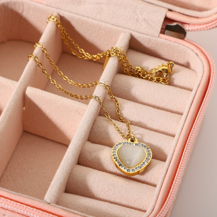 Wunderschöne Halskette aus natürlichem Opalstein . Die 18 K vergoldete Schlüsselbeinkette mit einem Zirkonia - Herzanhänger ist das perfekte Geschenk für Ihre Liebste . Diese Halskette verleiht jedem Outfit einen Hauch von Eleganz und lässt Sie aus der Masse hervorstechen . Der Opalstein soll dem Träger Glück und Harmonie bringen .