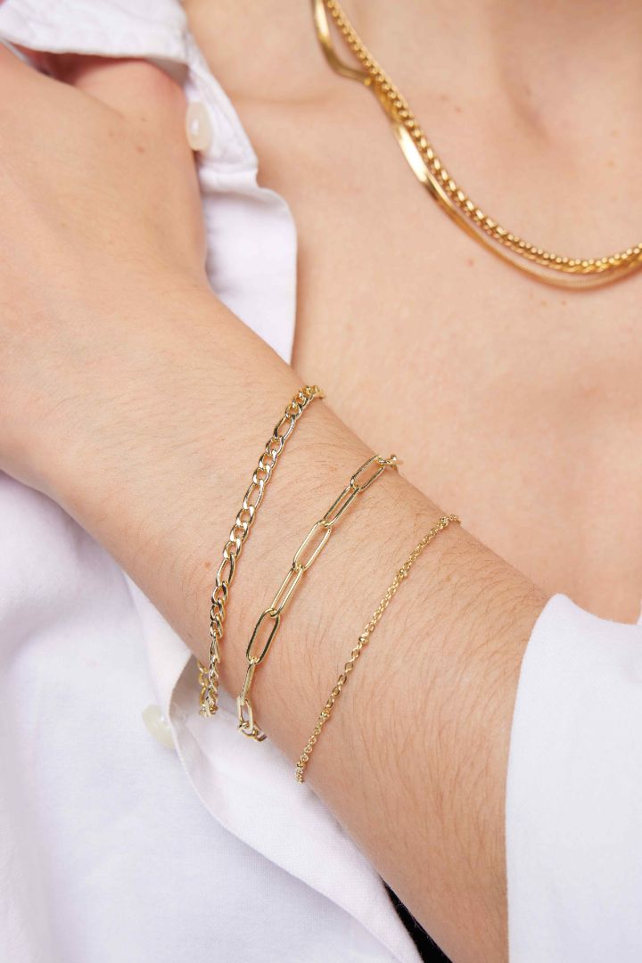 Schmücken Sie Ihr Handgelenk mit der zeitlosen Eleganz des Juliette-Armbands – ein schlichtes und klassisches Büroklammerkettendesign, das Ihr Ensemble mühelos aufwertet. Dieses Armband ist ein Beweis für zeitlosen Stil und damit ein vielseitiges Accessoire für legere und formelle Anlässe. Lassen Sie sich von der Schlichtheit der Büroklammerkette verführen und machen Sie Juliette zu einem unverzichtbaren Stück in Ihrer Schmuckkollektion, das sich perfekt einzeln oder in Kombination mit anderen Stücken tragen lässt.