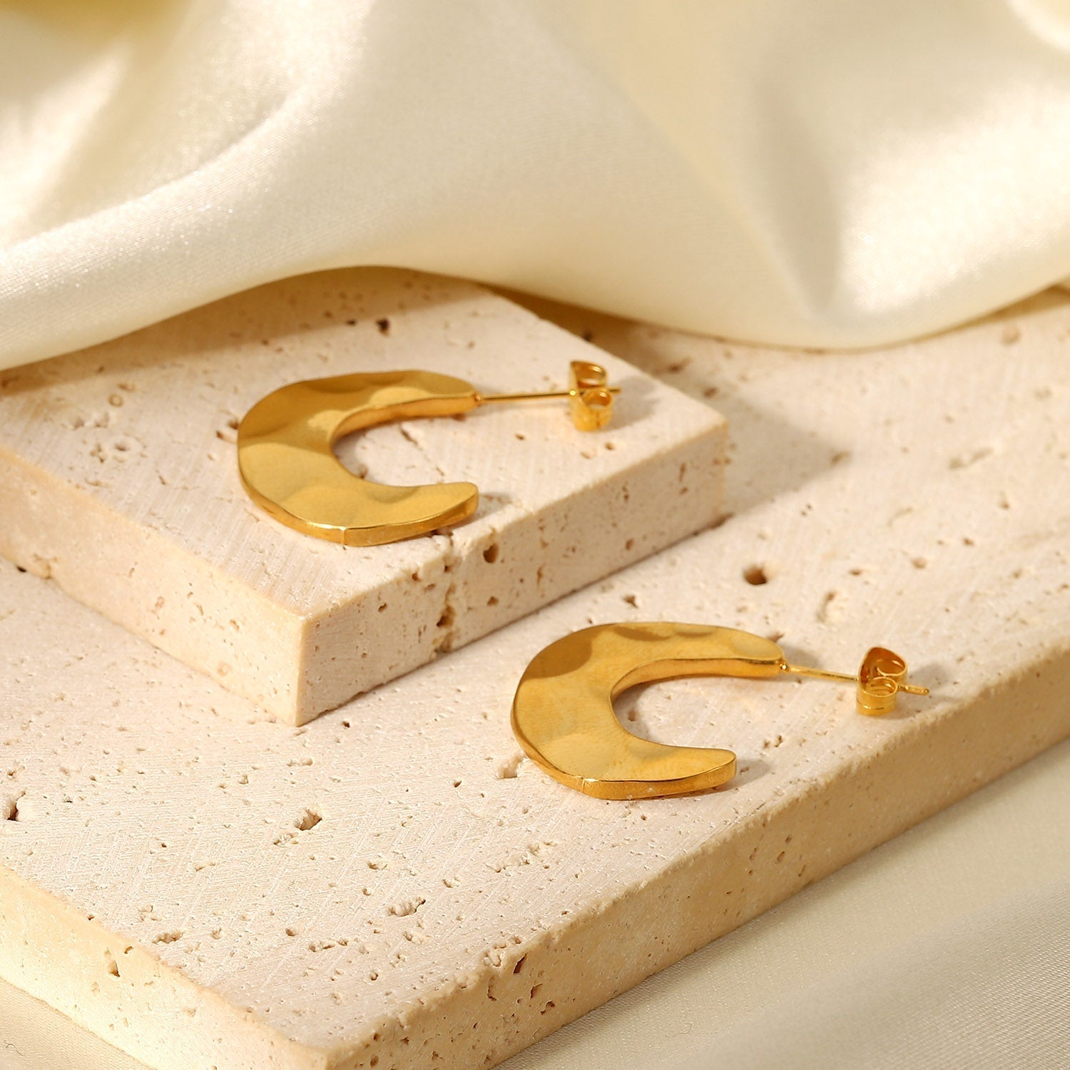 Estos elegantes pendientes de martillo de doble cara en forma de CC chapados en oro de 18 K son el accesorio perfecto para cualquier atuendo . El baño de oro les da un aspecto lujoso , mientras que la forma de martillo de doble cara agrega un toque moderno . Los pendientes son livianos y cómodos de usar , y son una excelente pieza de declaración . Ya sea que esté buscando un toque sutil de glamour o una declaración de moda audaz , estos pendientes seguramente dejarán una impresión duradera .