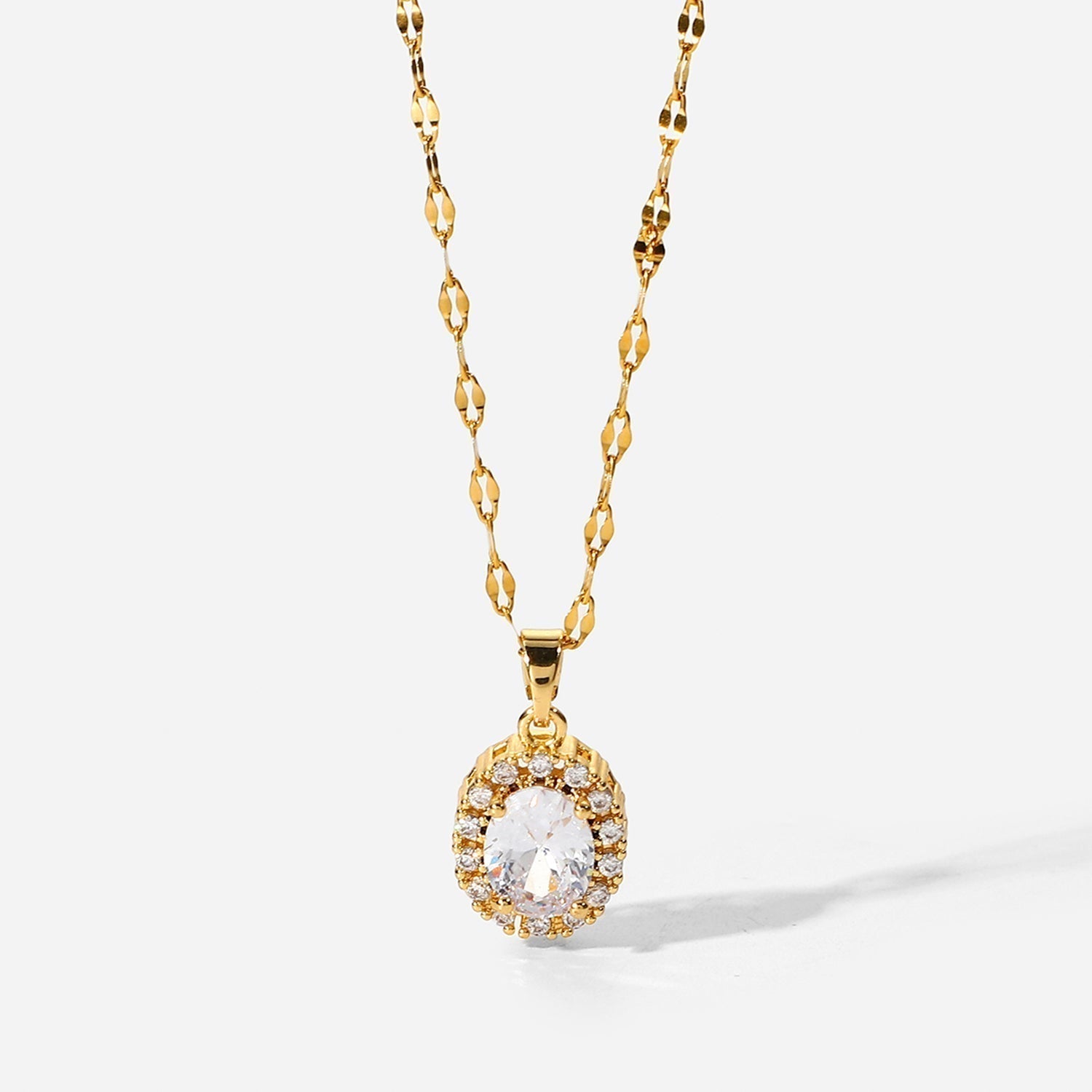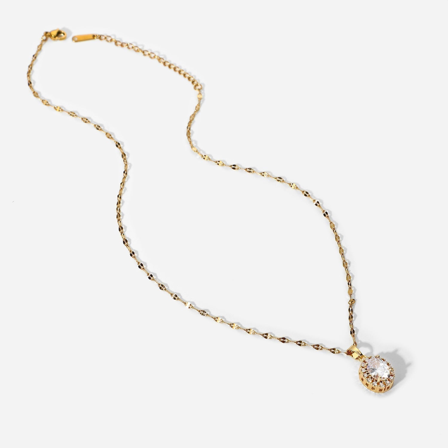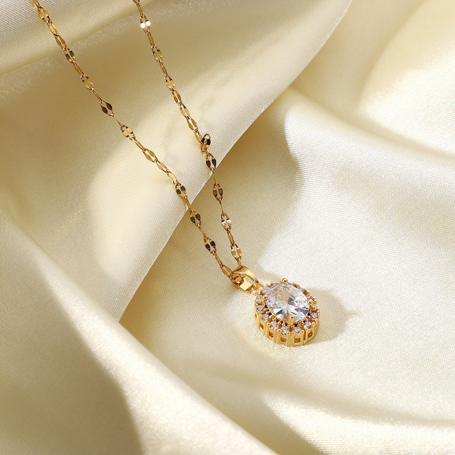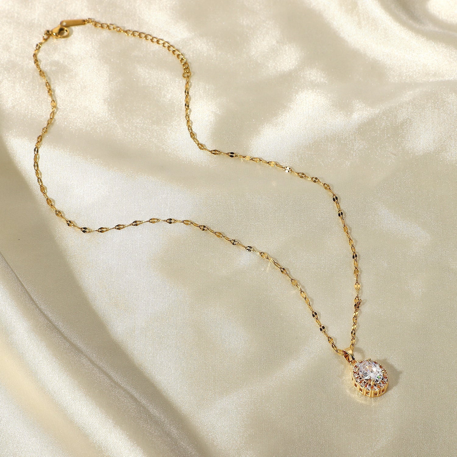 Este elegante collar colgante de circonita cúbica blanca es una declaración de estilo perfecta para todos . Es delicado , por lo que agrega más encanto . Este collar colgante está elaborado con piedras de circonita cúbica de alta calidad que son conocidas por su claridad y brillo . Las piedras de corte redondo agregan un efecto brillante al diseño . El color blanco de las piedras agrega un toque clásico y sutil al diseño . Este collar es perfecto para regalar o para ocasiones especiales .