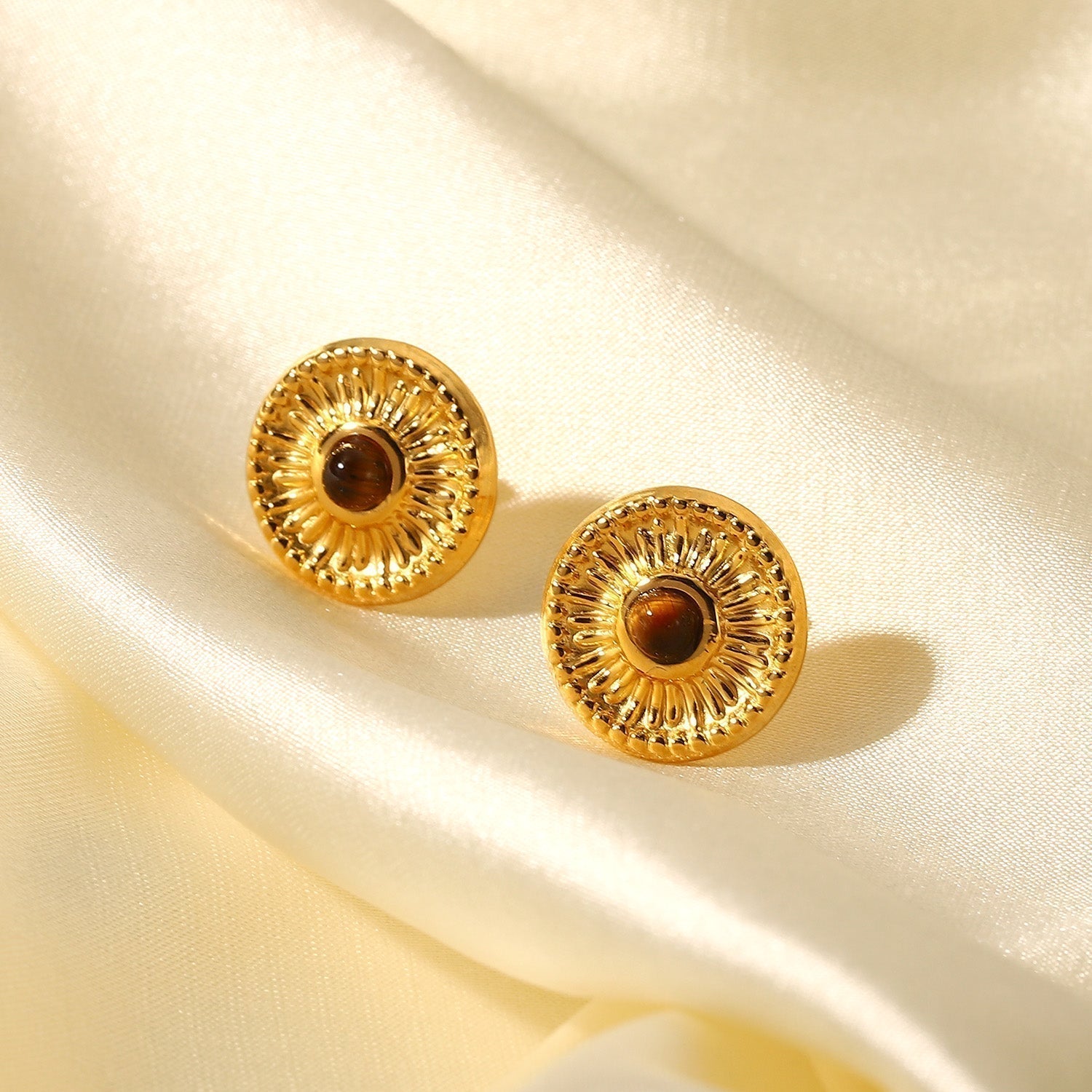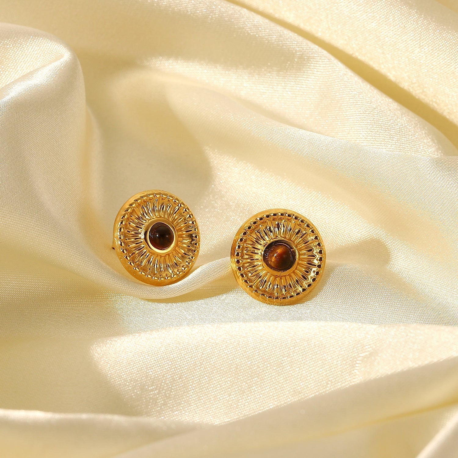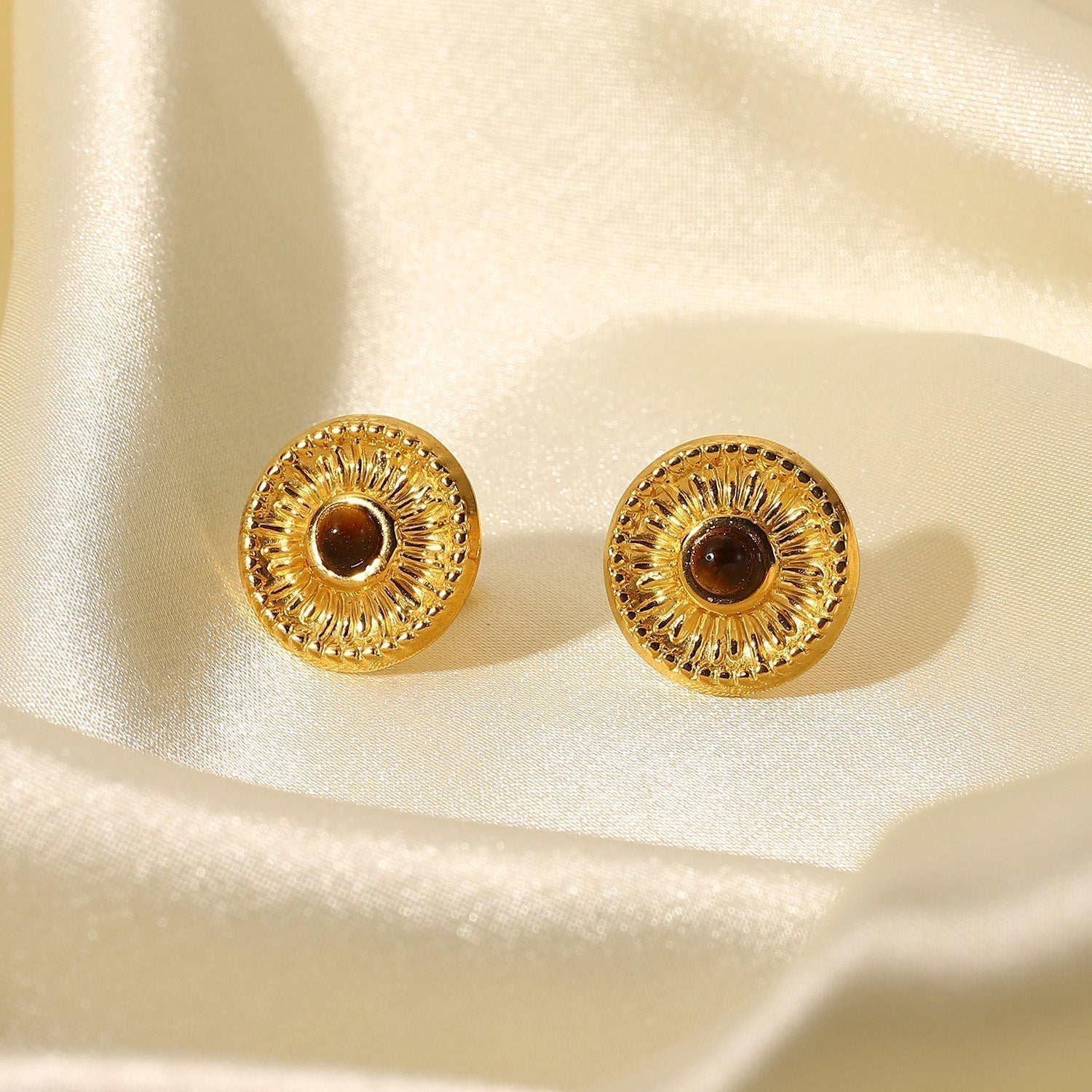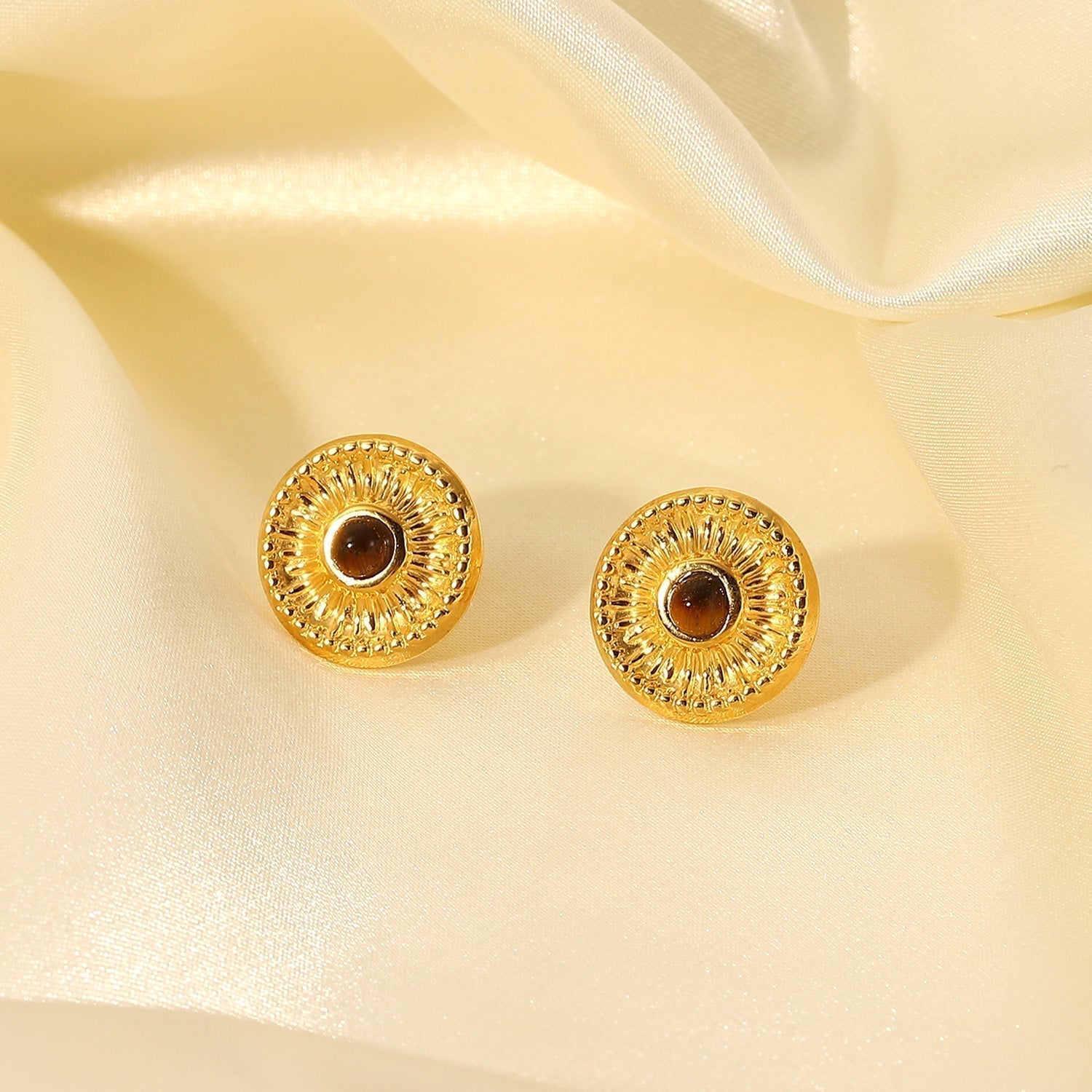 Los hermosos aretes de botón redondos con incrustaciones de ópalo retro con presión para orejas perforadas brindan un aspecto clásico con una versatilidad increíble: un estilo esencial.