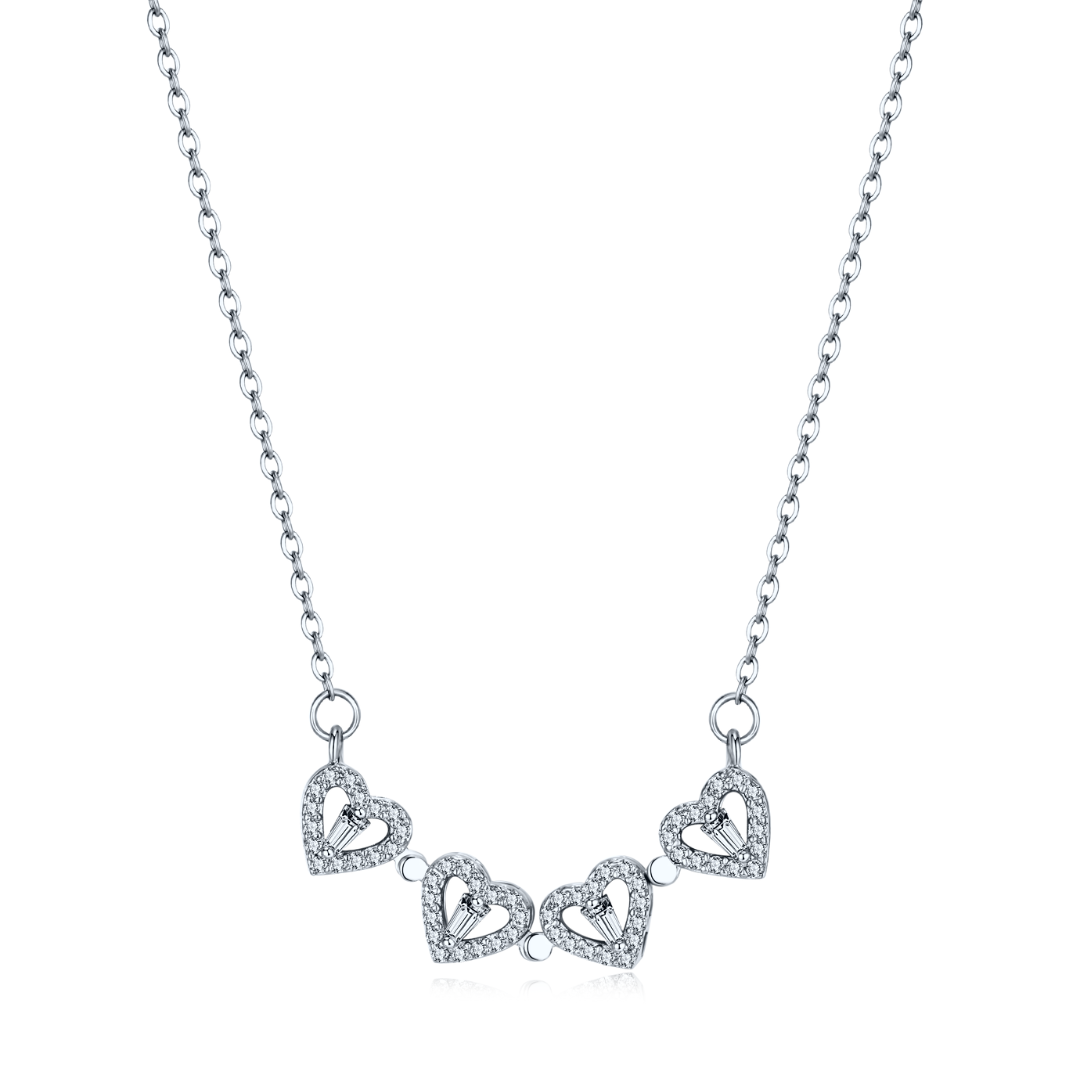 El collar se puede usar de dos maneras: trébol de la suerte y cuatro corazones románticos. El colgante une magnéticamente los corazones para formar el trébol.