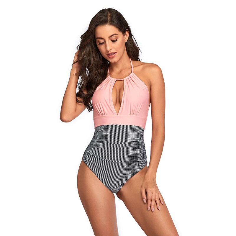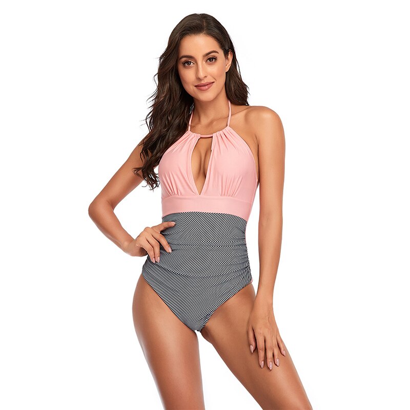 Características: Traje de una pieza,Patchwork de rayas,Sin espalda
