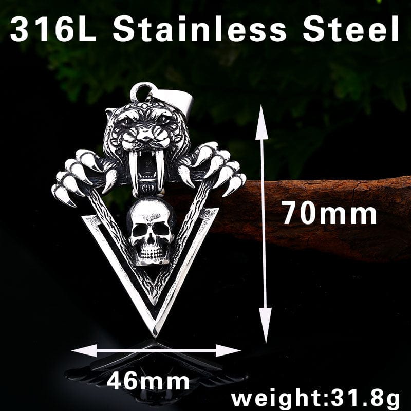 Este colgante de calavera está fabricado en acero inoxidable 316L de alta calidad, es grueso y tiene detalles excepcionales. Ha sido elaborado cuidadosamente para durar incluso en los momentos más difíciles. Este colgante de acero inoxidable emite un sonido auténtico cuando se usa y seguro que llamará la atención. Un collar de hombre de verdad, un collar de acero inoxidable de hombre de verdad.