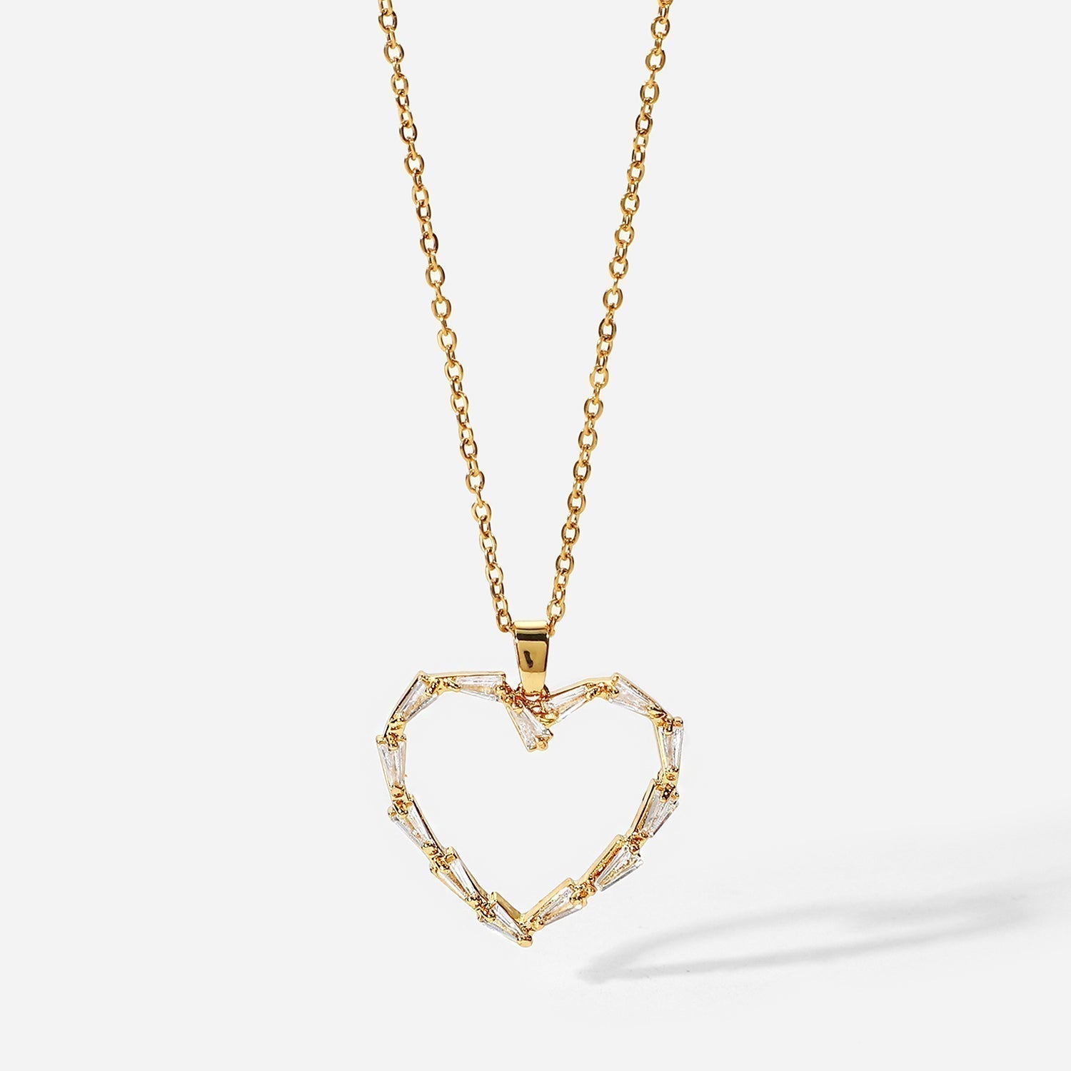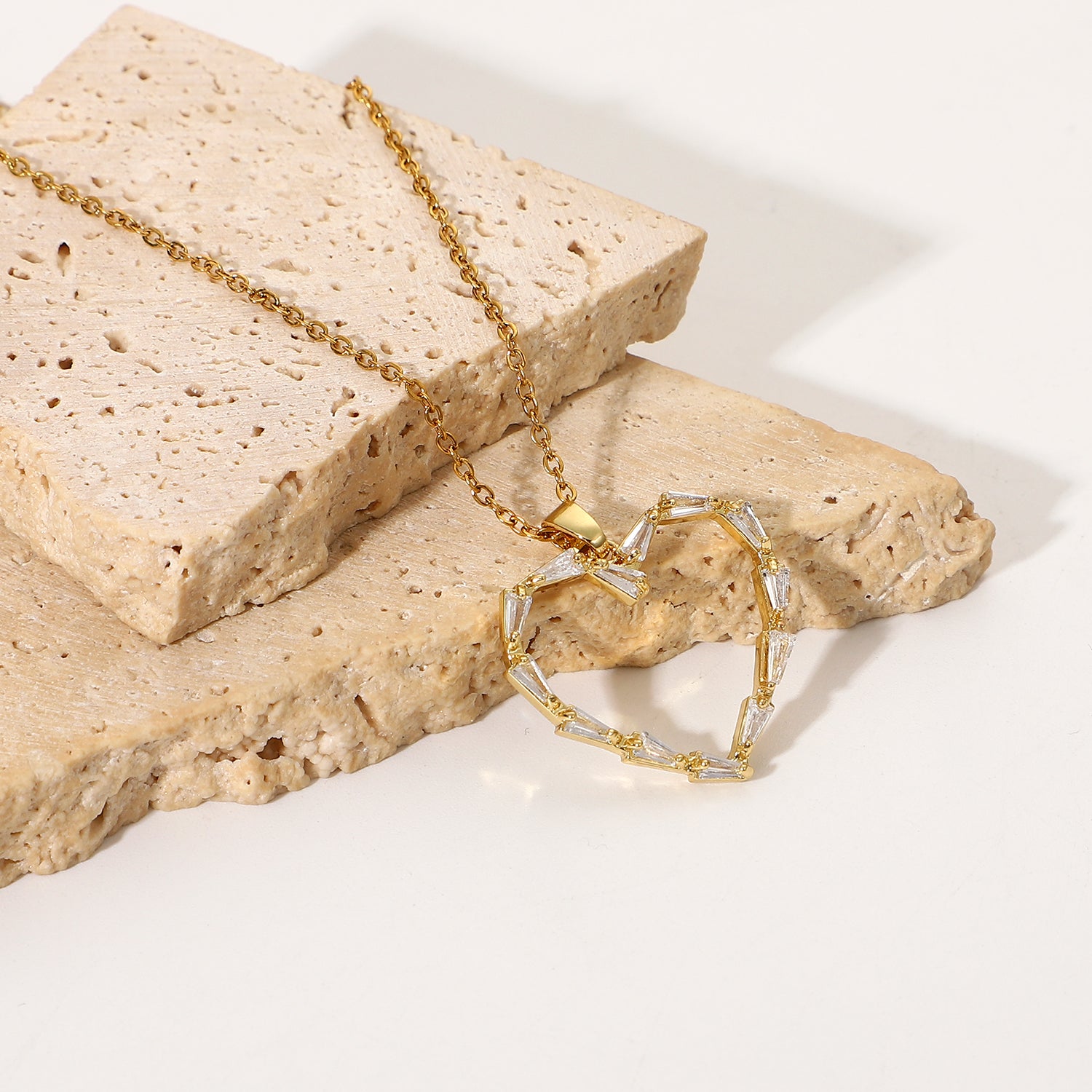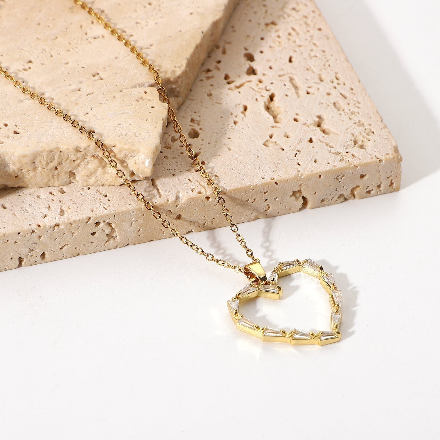 El símbolo del corazón es el símbolo del amor y el romance. Este colgante triangular de corazón de circonitas hace que los significados sean más poderosos y hermosos. Este hermoso y elegante collar es un regalo perfecto.