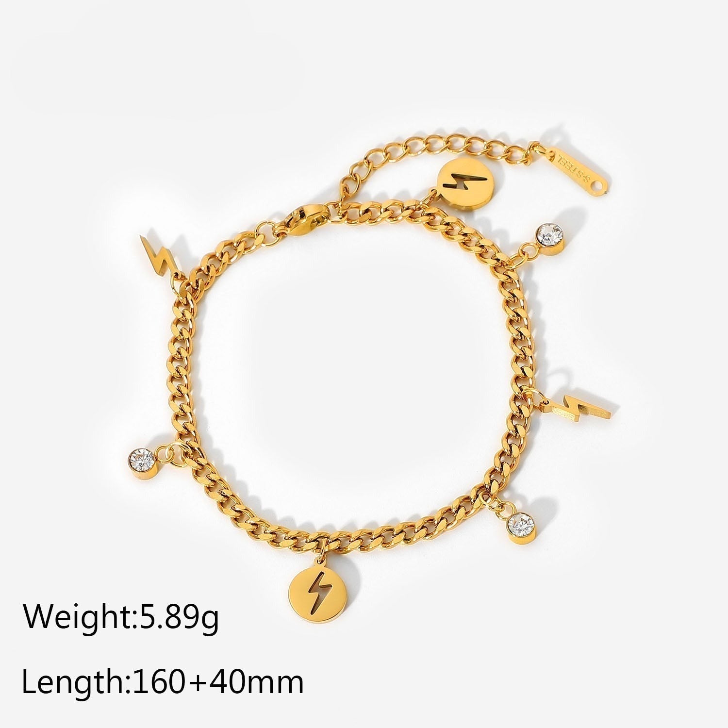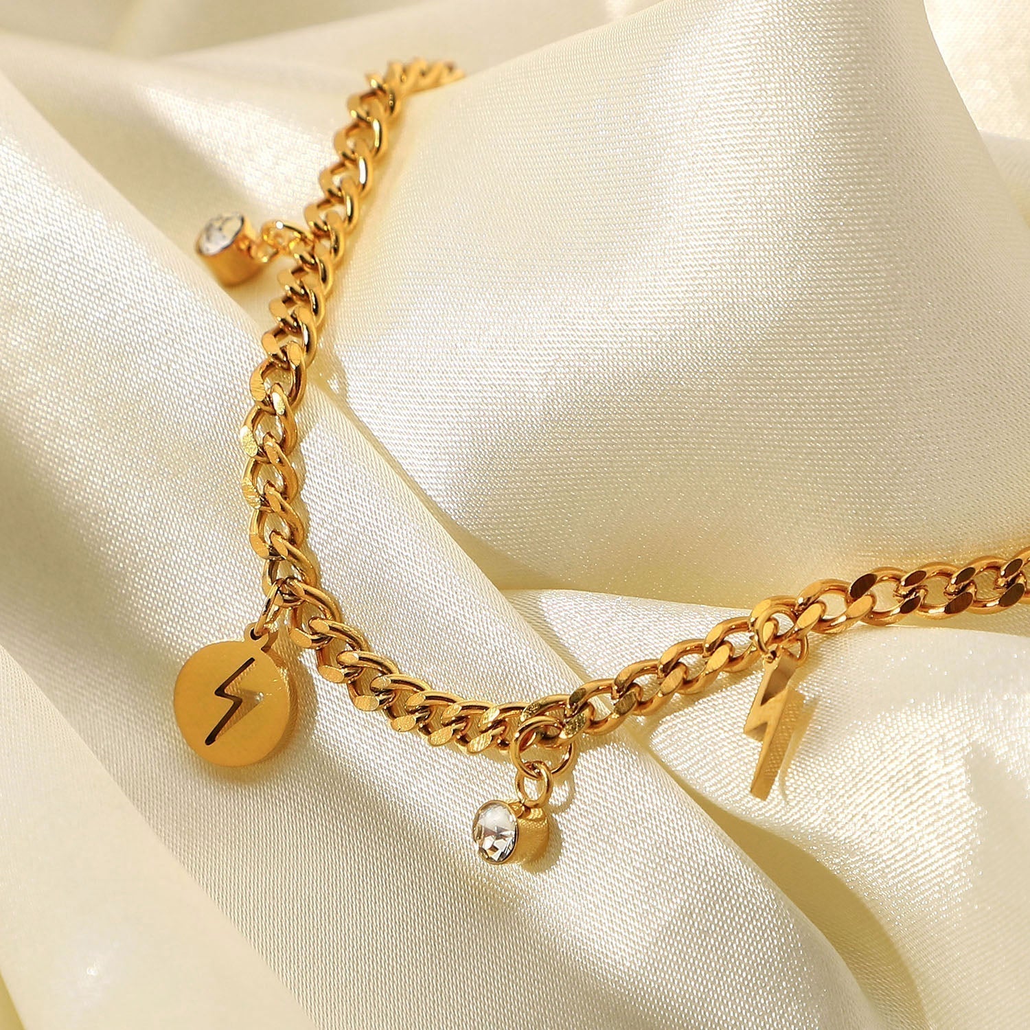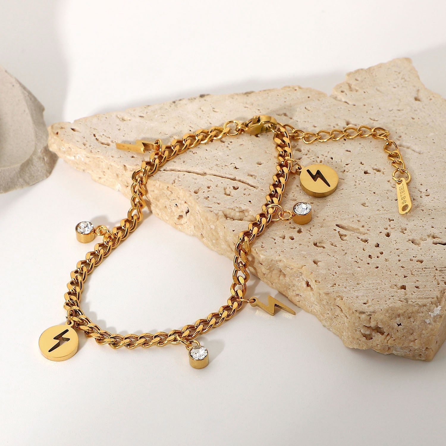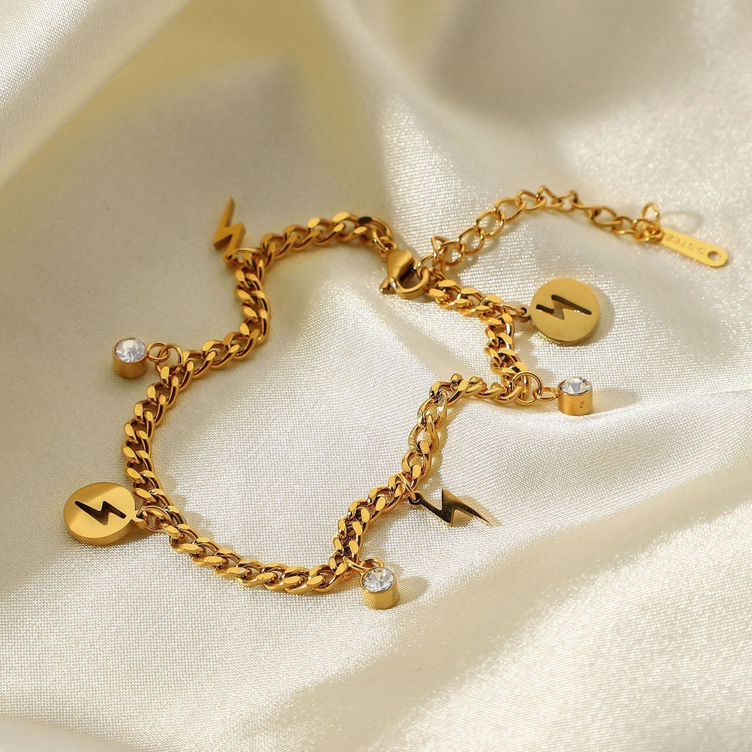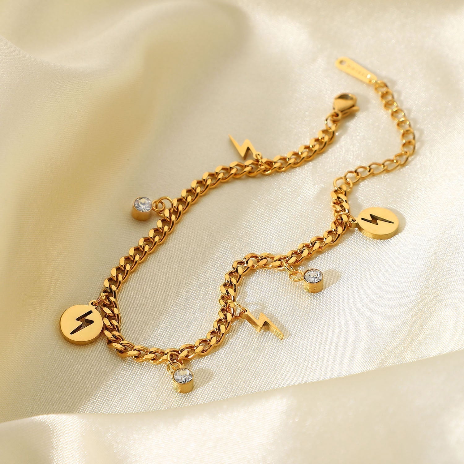 18k gold plated lightning flash charm bracelet. Boho style Cubic Zirconia stylish bracelet. Best stitch for casual and formal clothing.