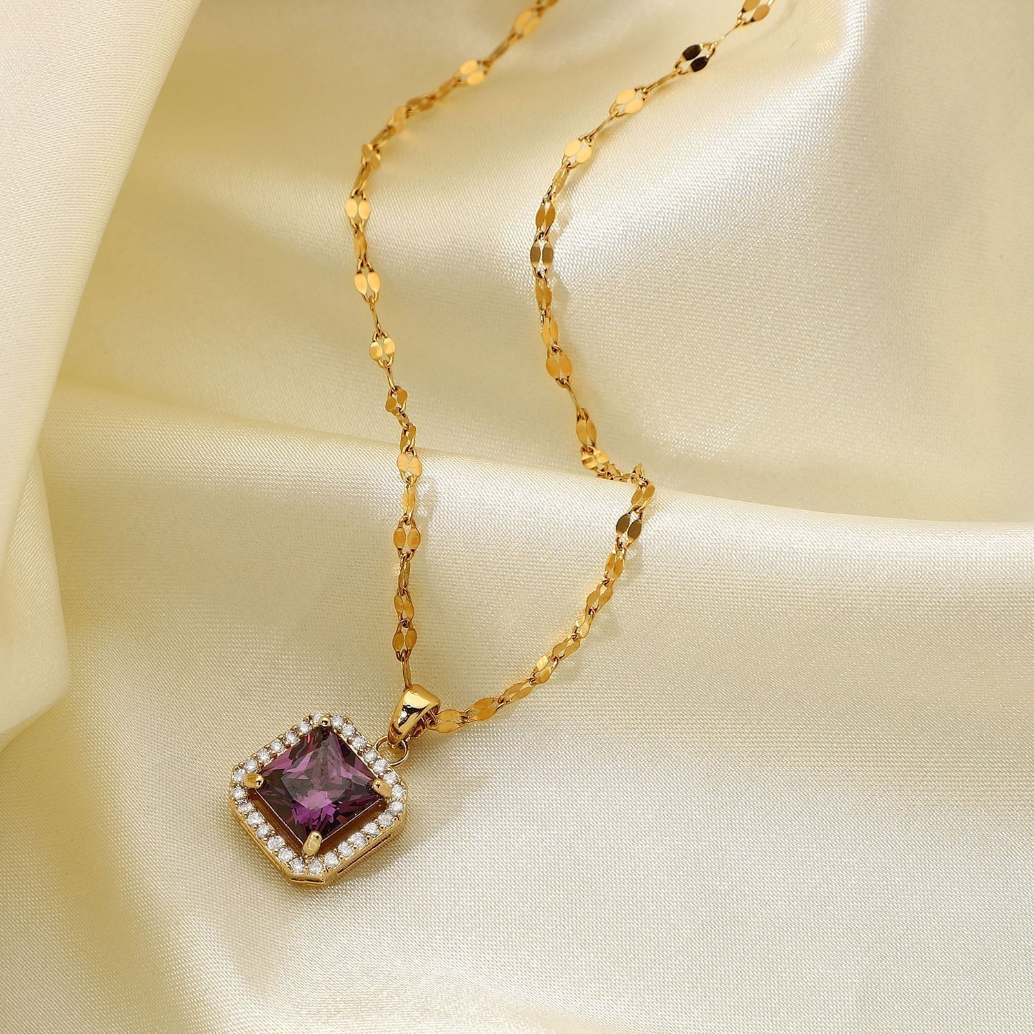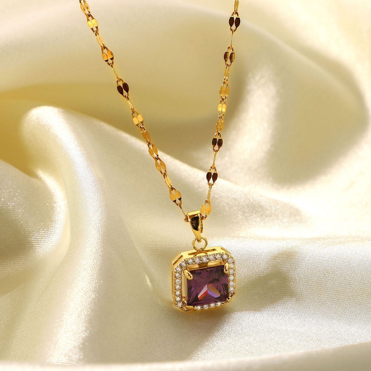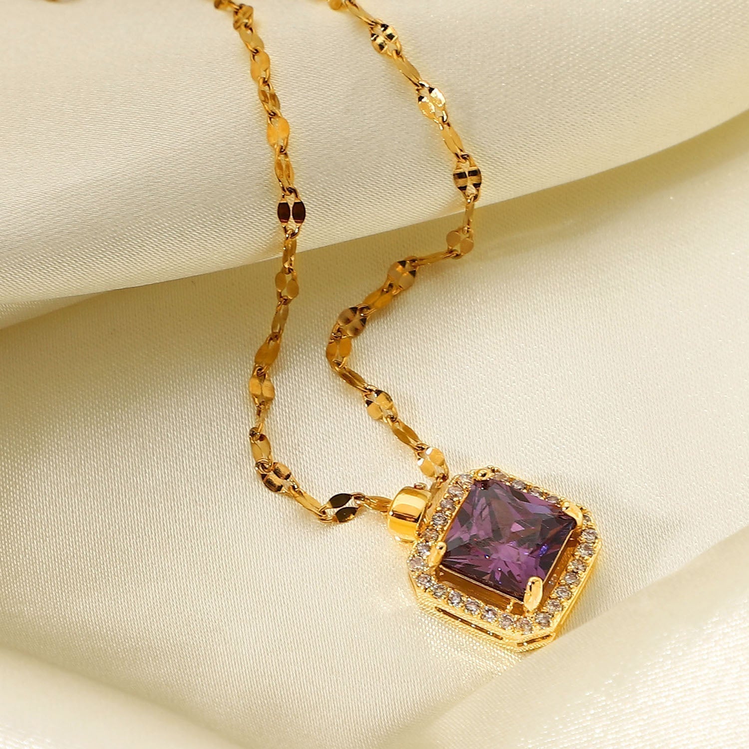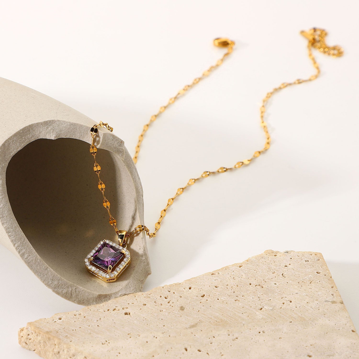 The Cubic Zirconia is a stunning shade of purple, and it has a brilliant sparkle that will make your look stand out. It is the perfect accessory for a night out or a special occasion. The simple, elegant design will add a touch of sophistication to any outfit. This necklace is a great gift for any occasion. It is perfect for birthdays, anniversaries, holidays, or just to show someone you care. It is sure to be a treasured piece that will be worn and enjoyed for years to come.