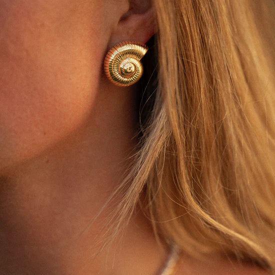 The Ariana Shell Earrings capture the essence of the ocean's timeless beauty. Inspired by seashells, these spiraling forms evoke the calming rhythm of waves, each curve reminiscent of ancient tides. Available in both gold and silver finishes, they bring a natural elegance that feels both earthy and opulent.