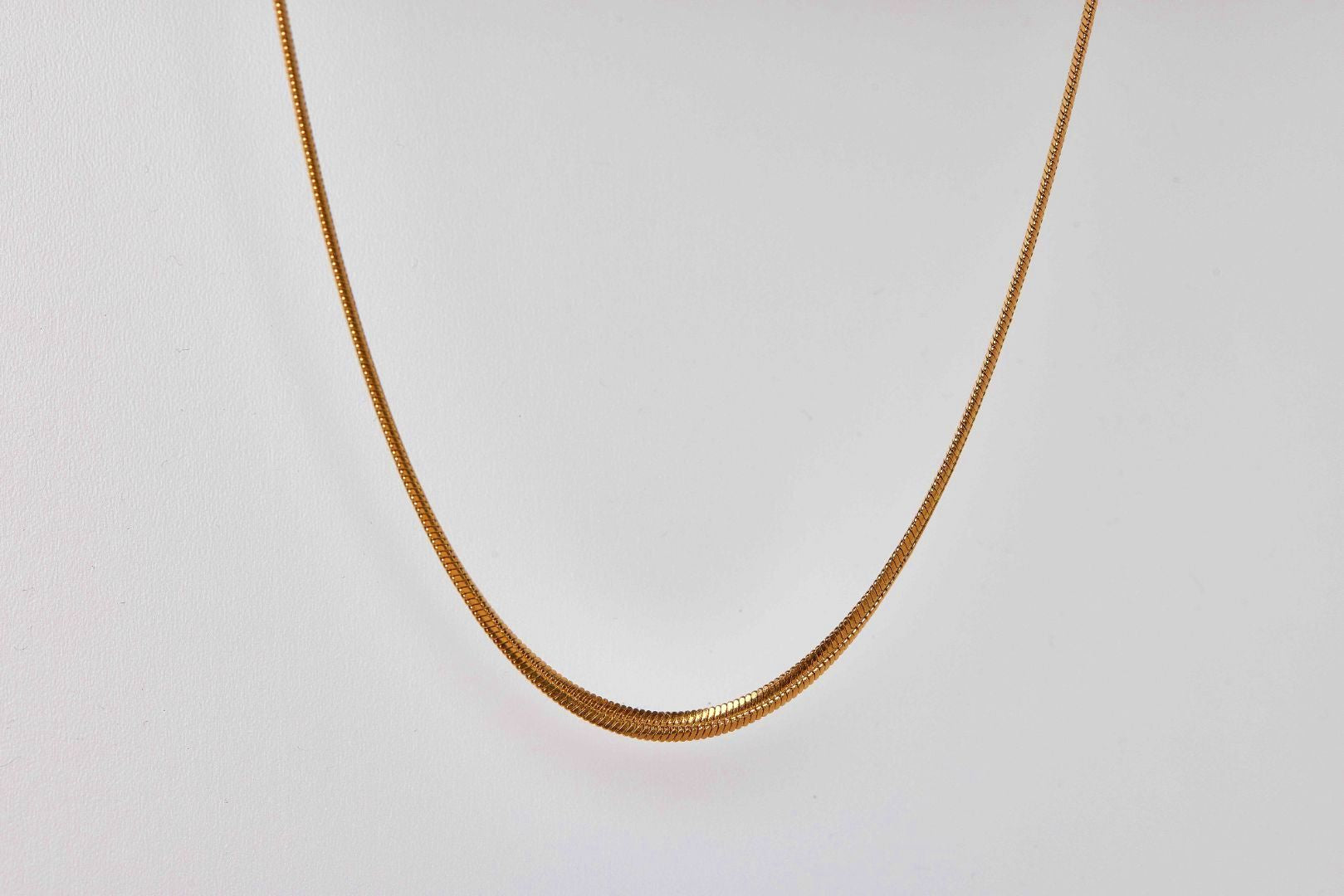 Celebrate enduring style with our Art Deco Chain—a classic and popular piece that has graced fashion through the years. With its herringbone pattern and intricate Art Deco detailing, this chain stands as a symbol of timeless elegance. Versatile and sophisticated, it's a perfect accessory, whether worn alone for a statement of classic beauty or layered with other necklaces to express your unique style. Elevate your ensemble with the Art Deco Chain—a true testament to the lasting allure of vintage charm.