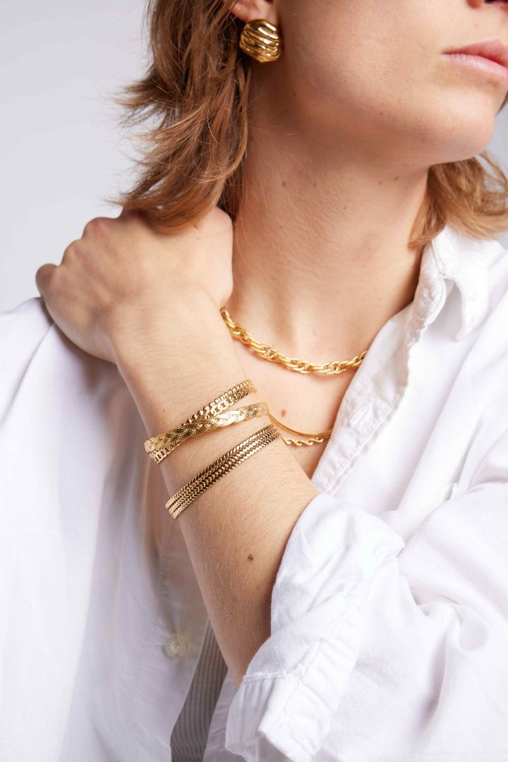 Embrace the vintage allure of the Athena Bangle—an adjustable bangle designed to transport you to the elegance of bygone eras. With its intricate vintage design, this bangle exudes sophistication and can be effortlessly adjusted to adorn any wrist size. Whether worn solo as a statement piece or layered with other bracelets for a personalized touch, the Athena Bangle adds a touch of timeless charm to your collection.