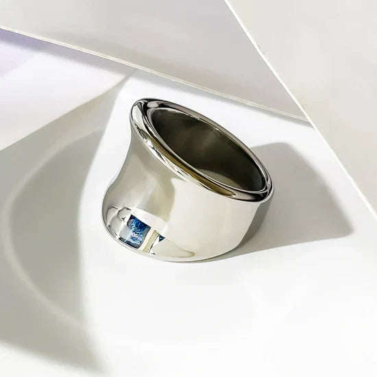 Its wide-band structure reflects bold confidence, yet its smooth, flowing curves keep it grounded in sophistication. Whether worn alone or stacked, the Athena Ring elevates your look with an air of timeless grace and effortless power. Perfect for those who dare to be iconic.
