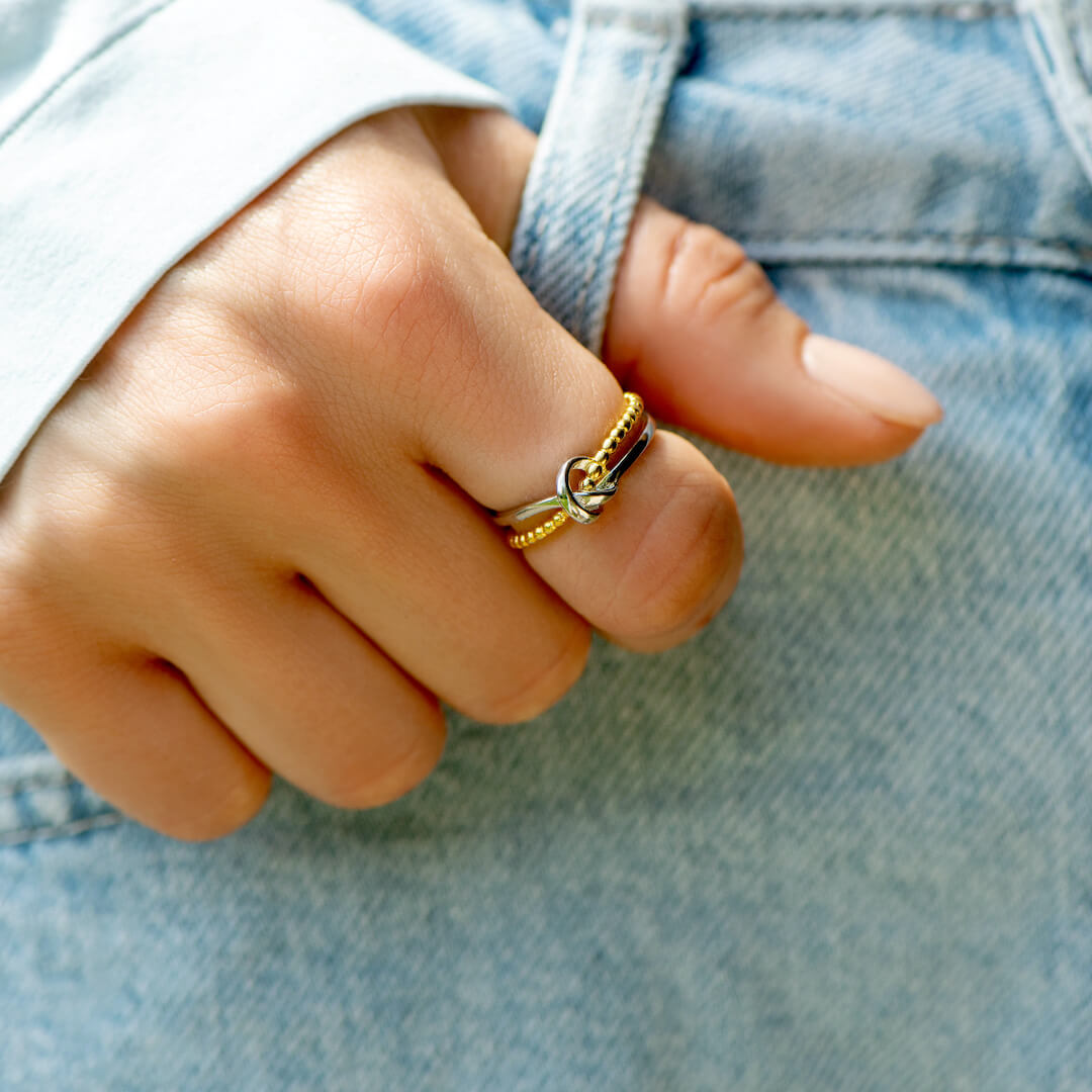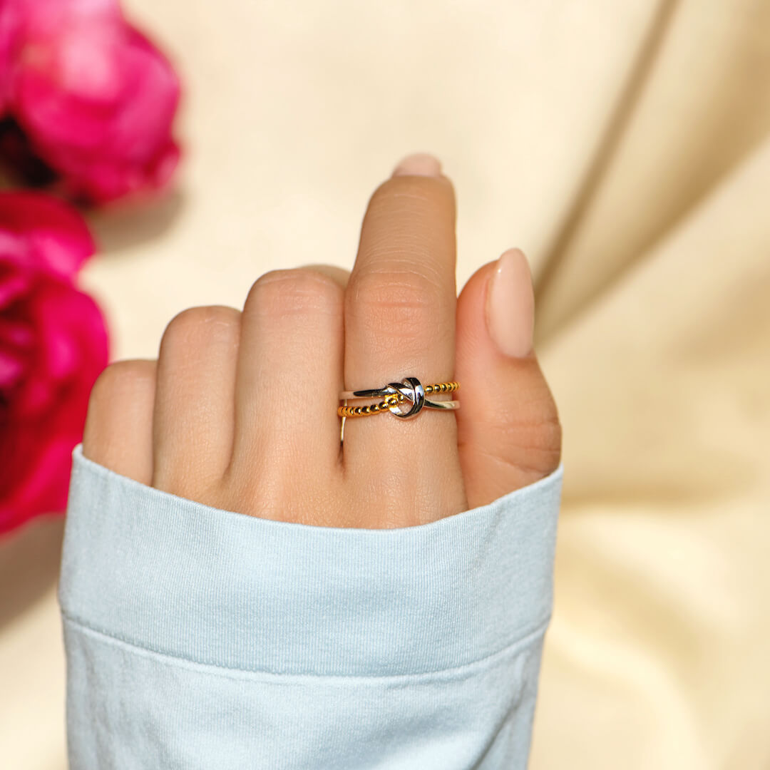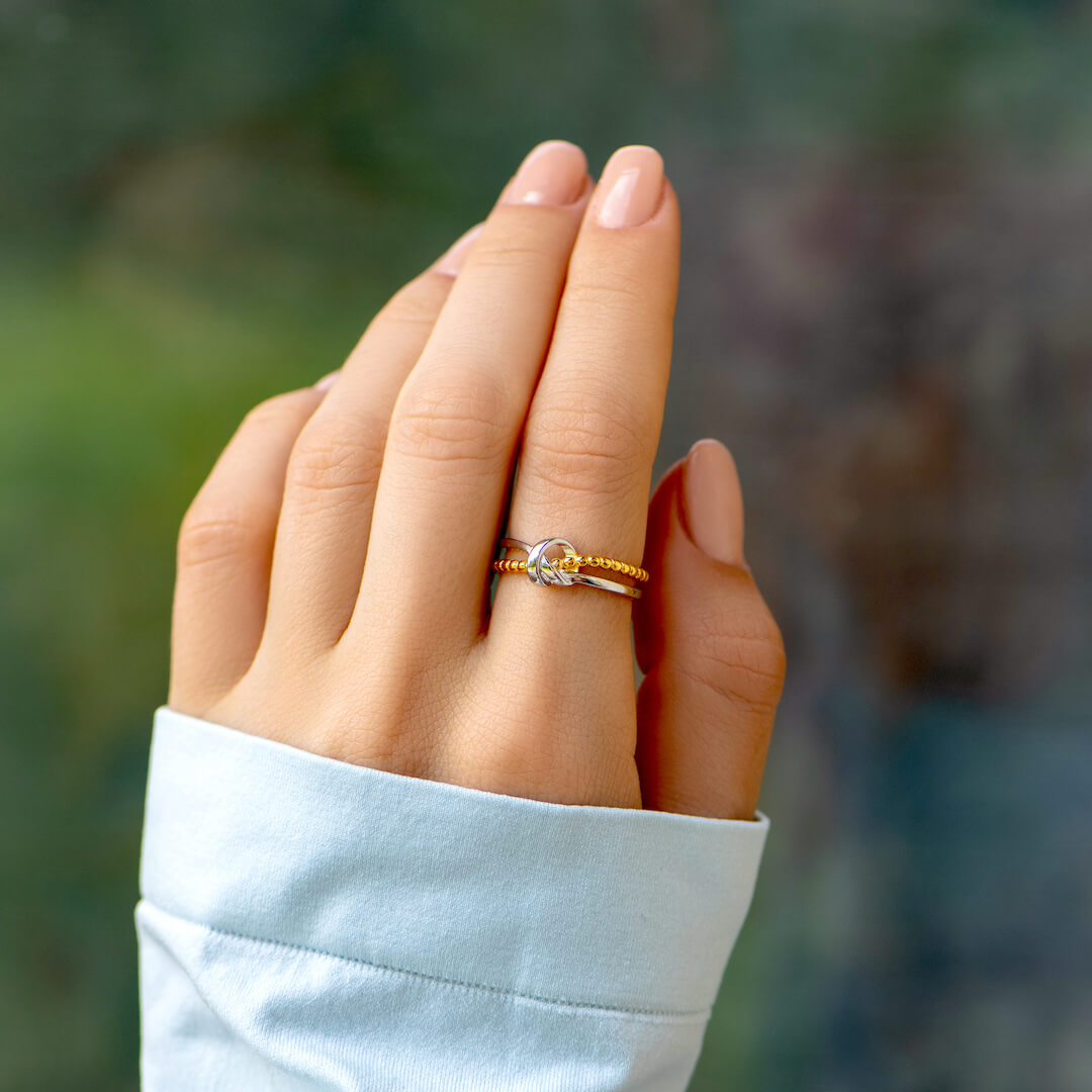 Tied By Angle's Hands - Double Band Heart Knot Ring
