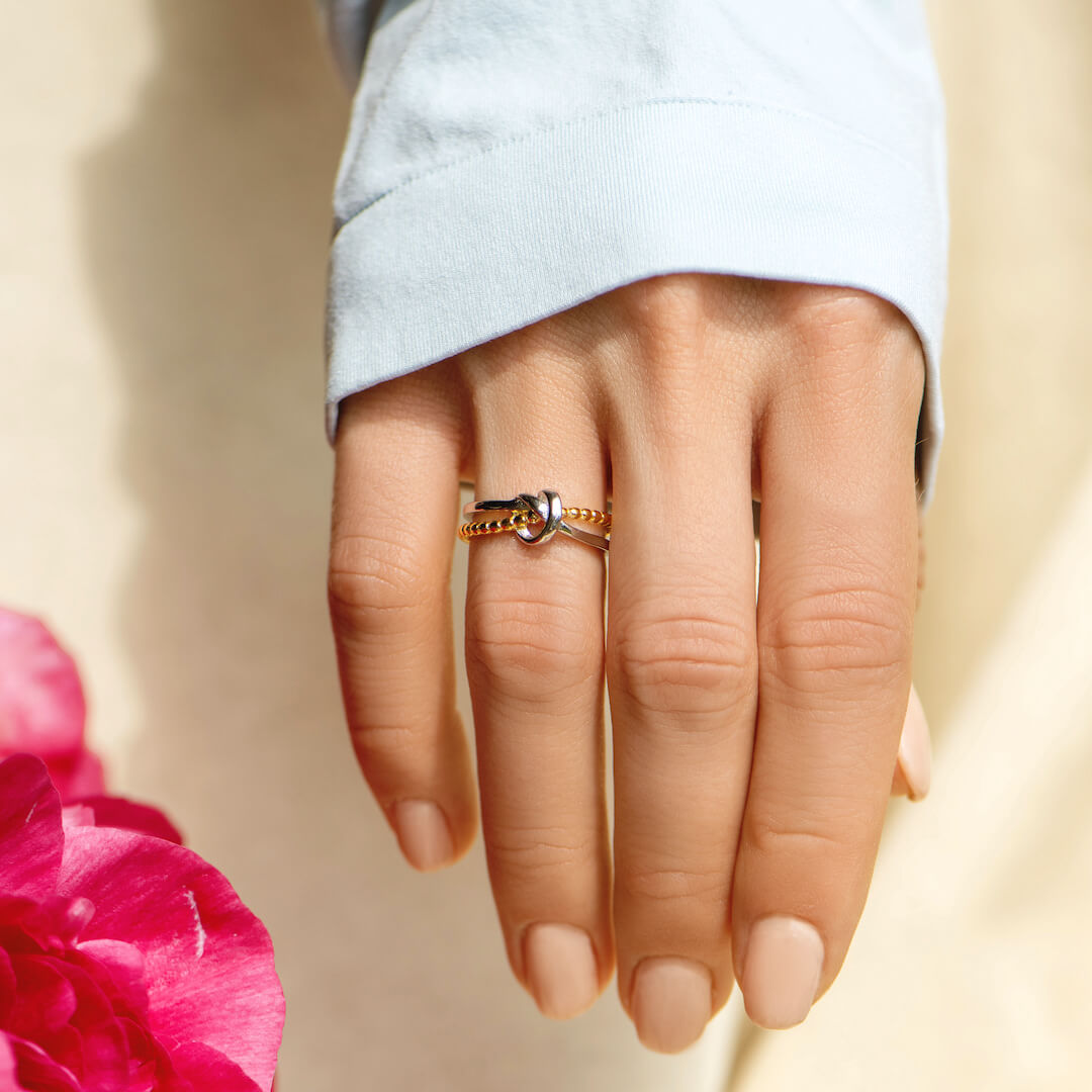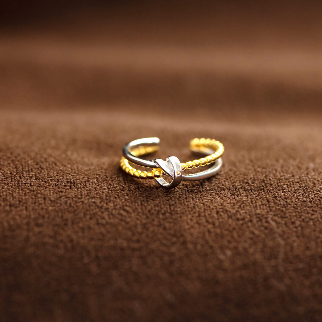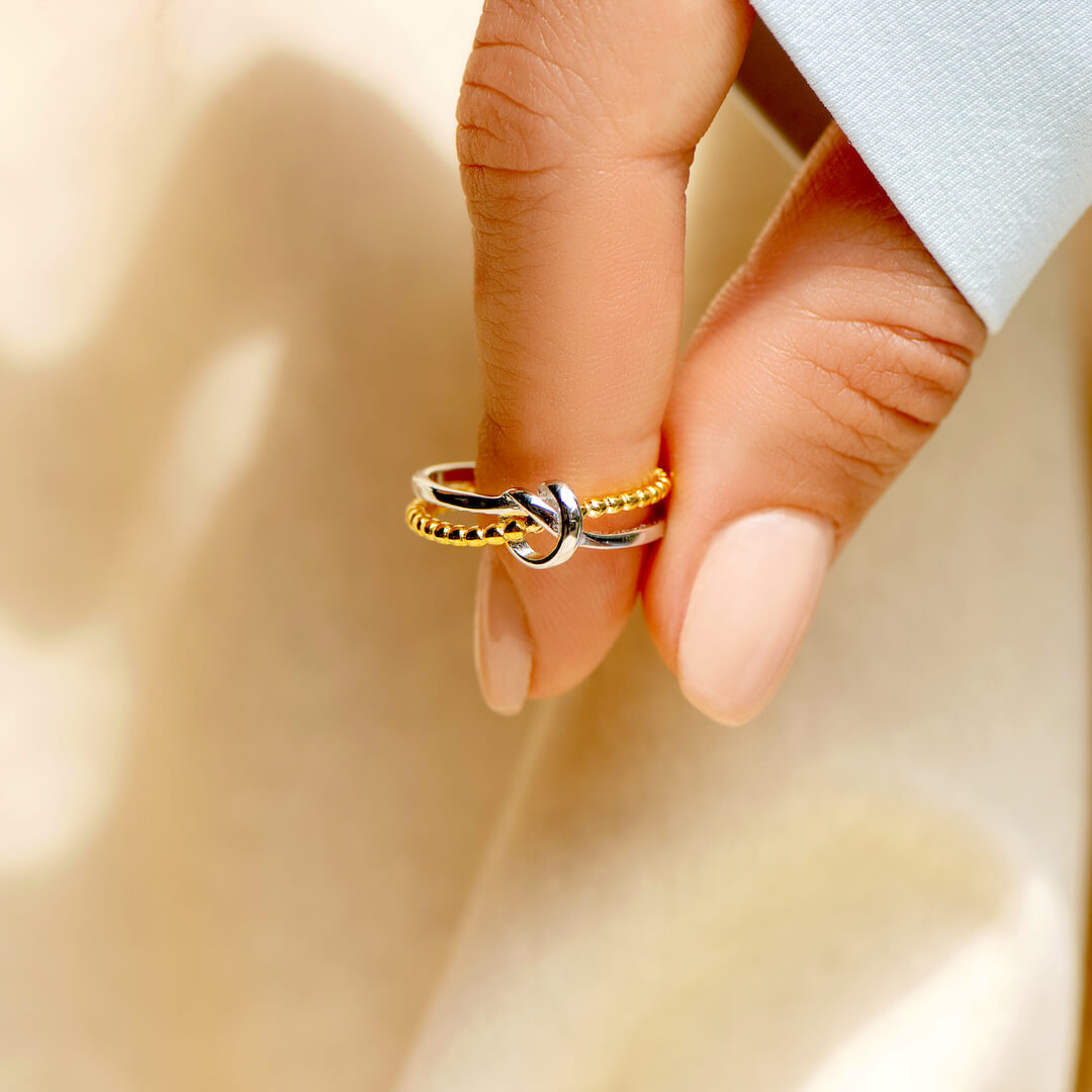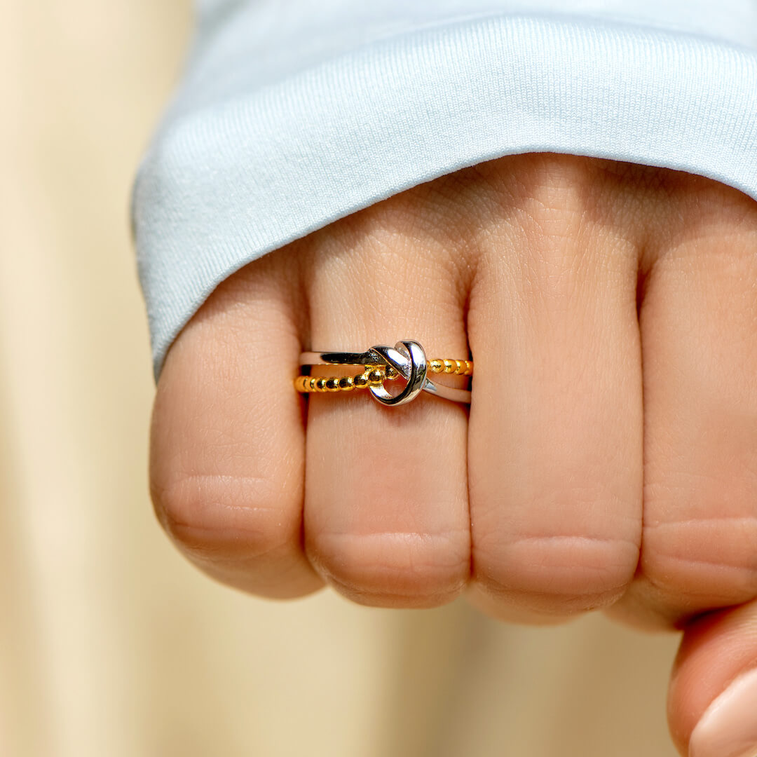 Tied By Angle's Hands - Double Band Heart Knot Ring