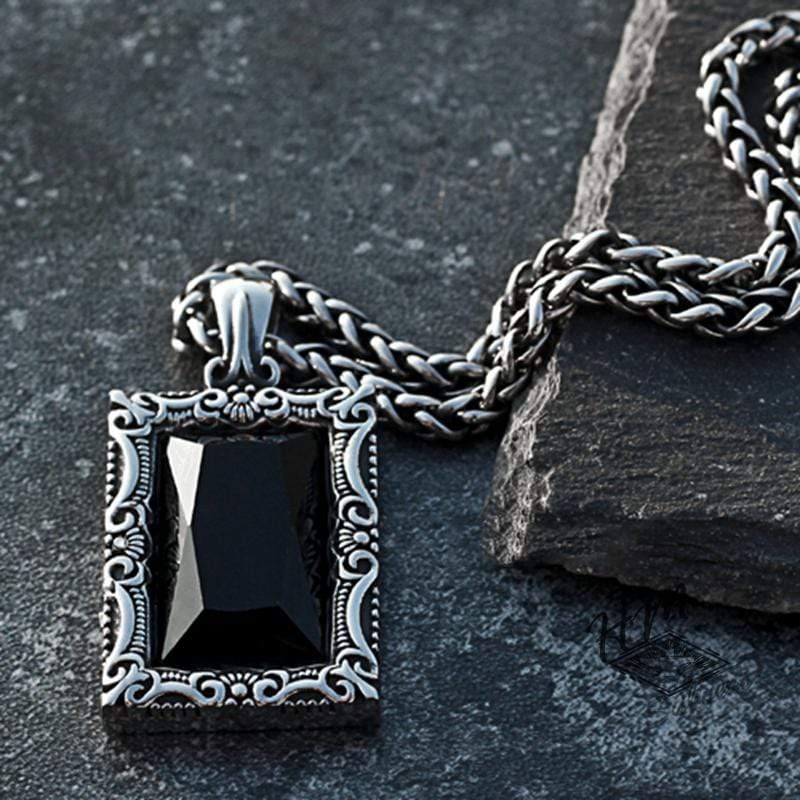 VINTAGE CARVED BLACK GEMSTONE PENDANT