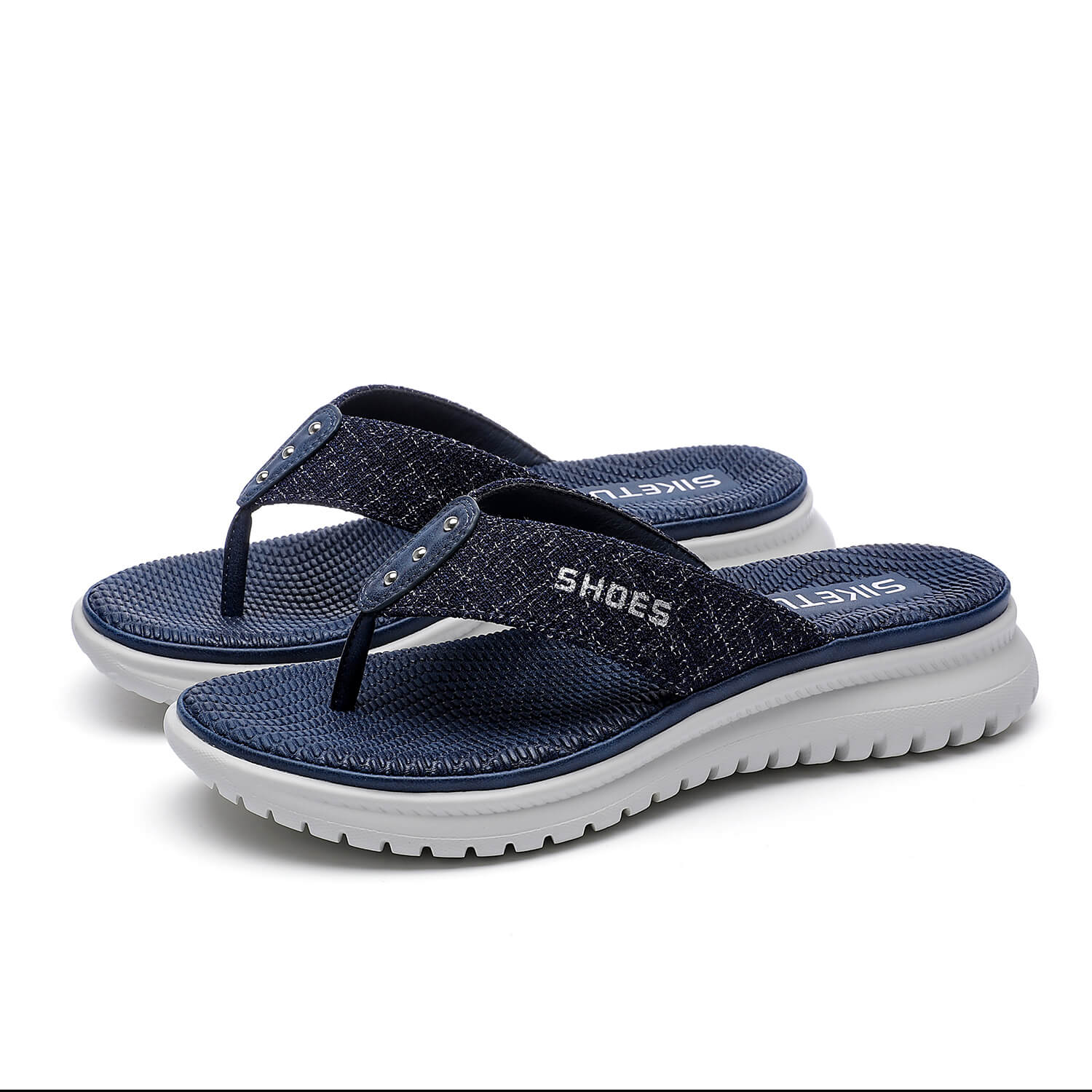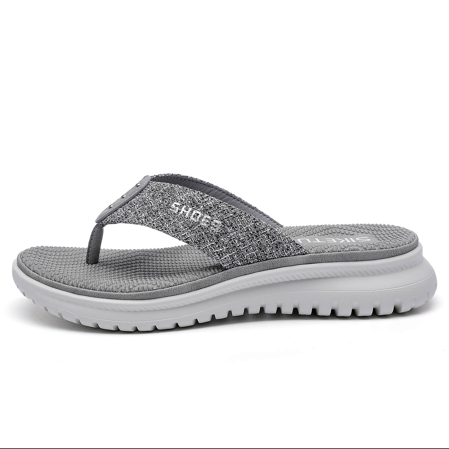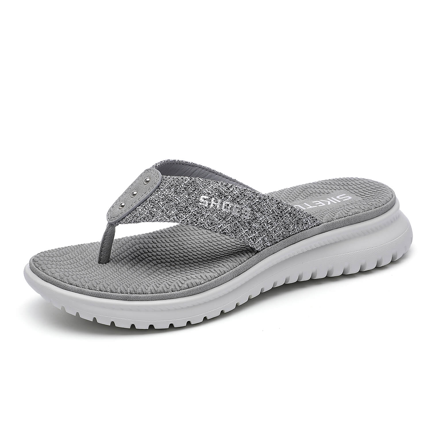 Take on sunny days in style with these sleek sandals boasting a foam footbed and a stud deco in front for a perfect look.