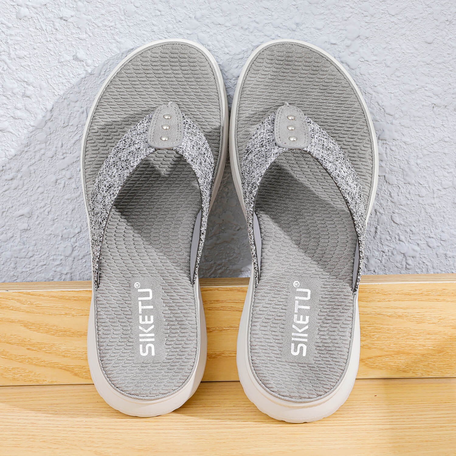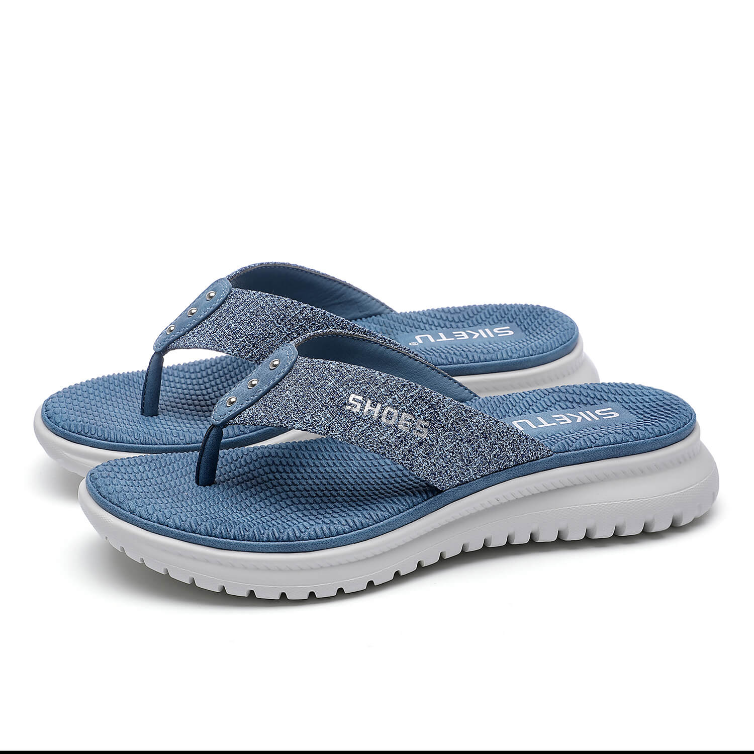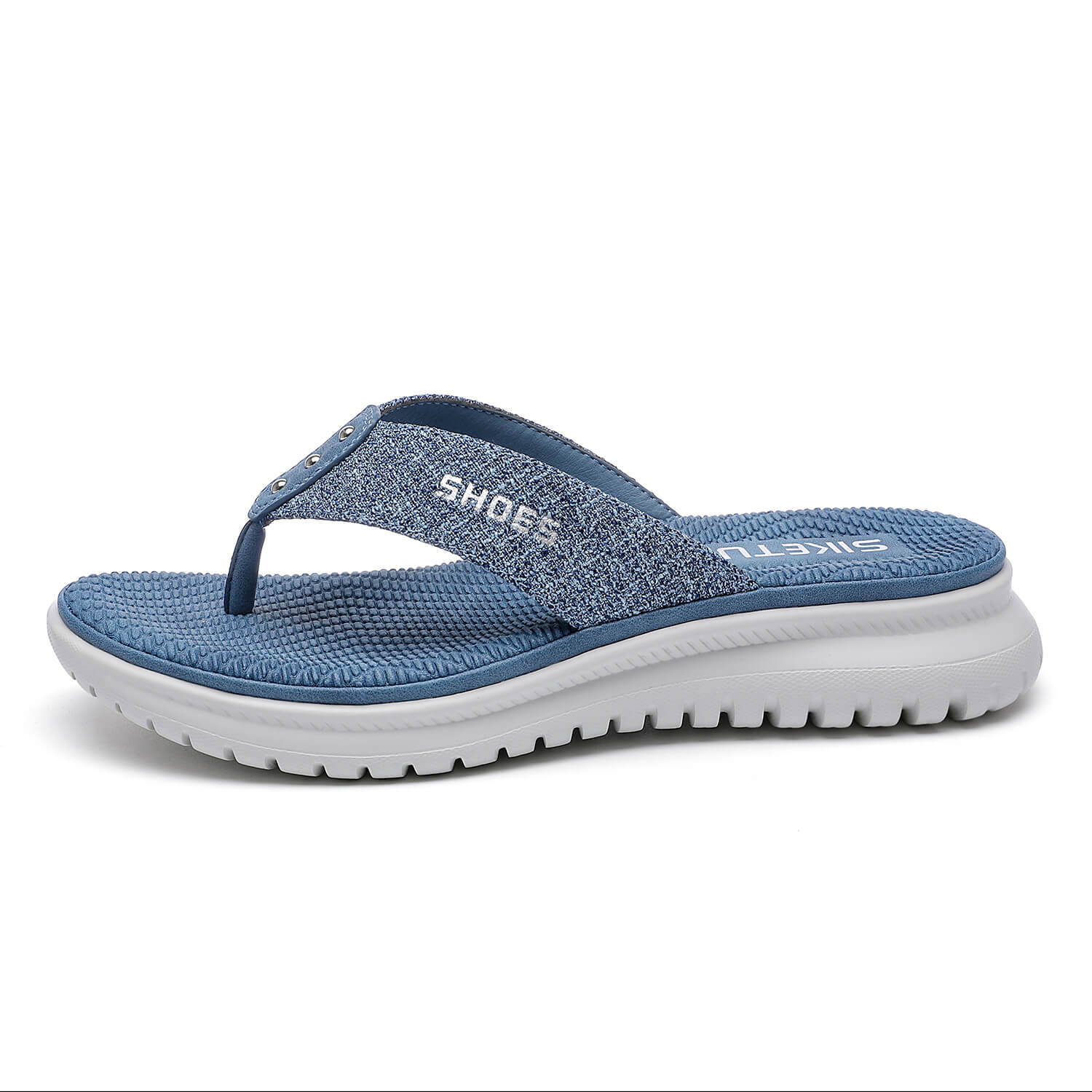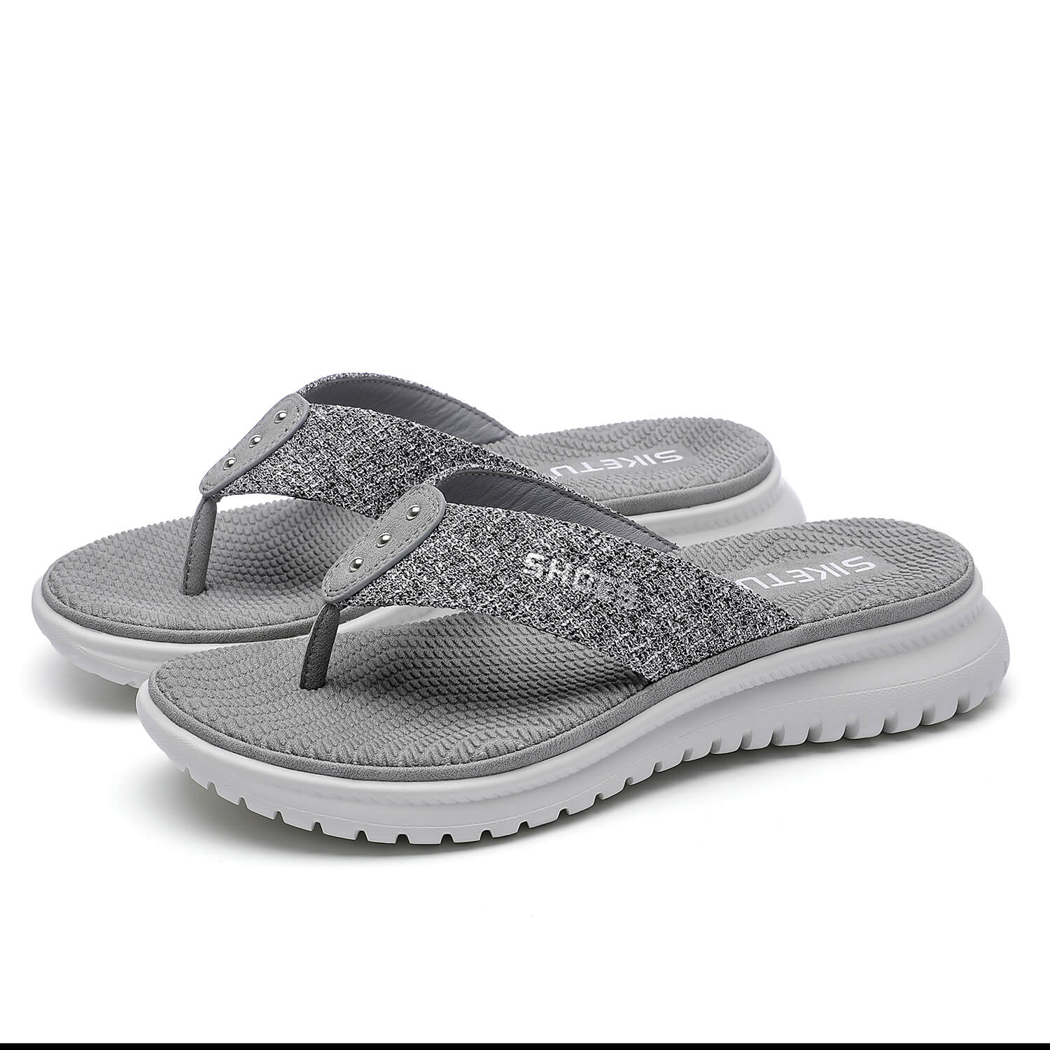 Take on sunny days in style with these sleek sandals boasting a foam footbed and a stud deco in front for a perfect look.