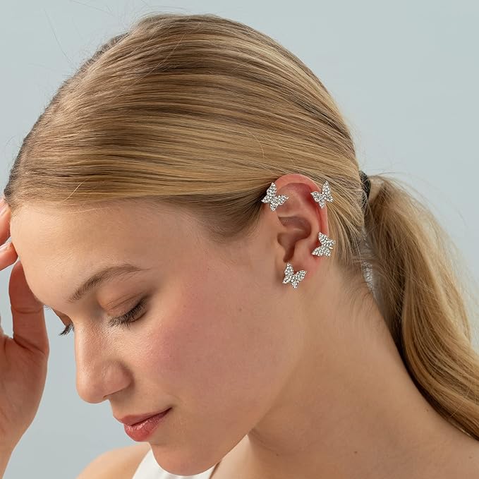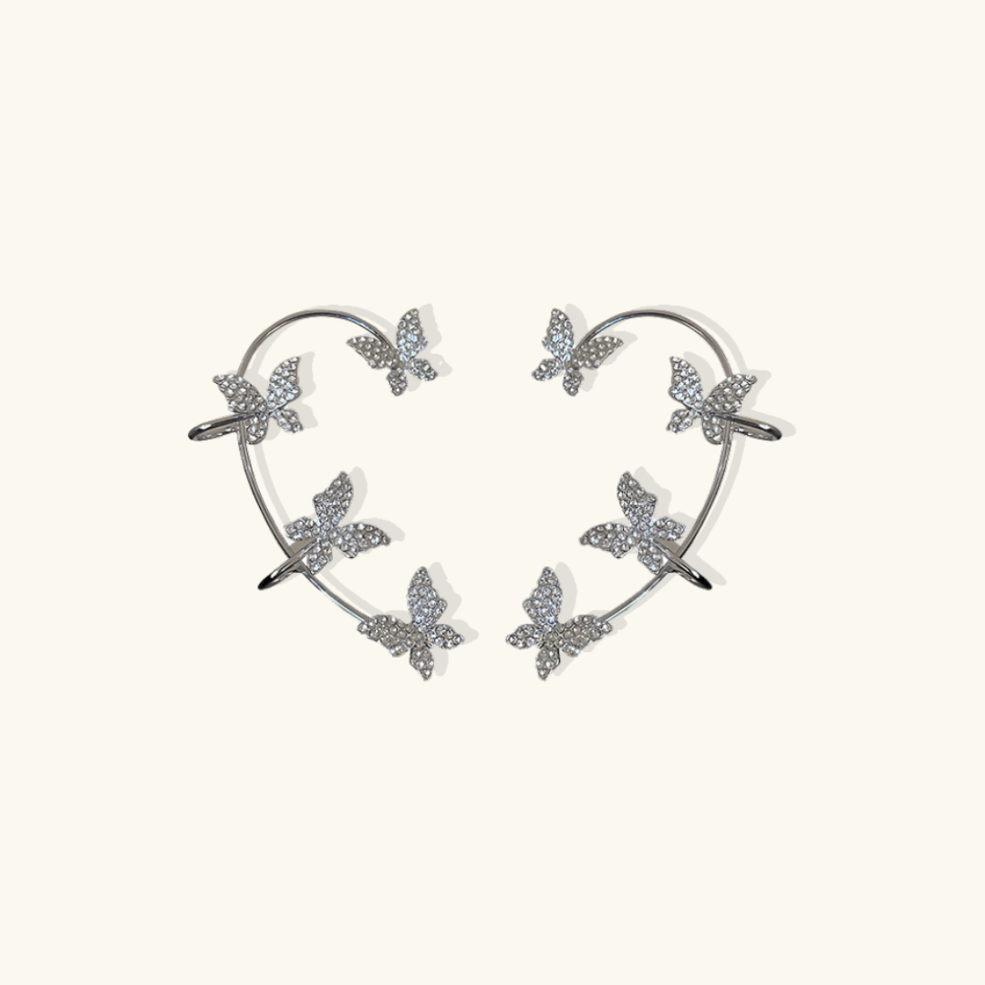 The Butterfly Earrings capture the enchanting beauty of nature with their delicate design and sparkling details. Each earring features a finely crafted butterfly adorned with shimmering stones that catch the light with every movement.