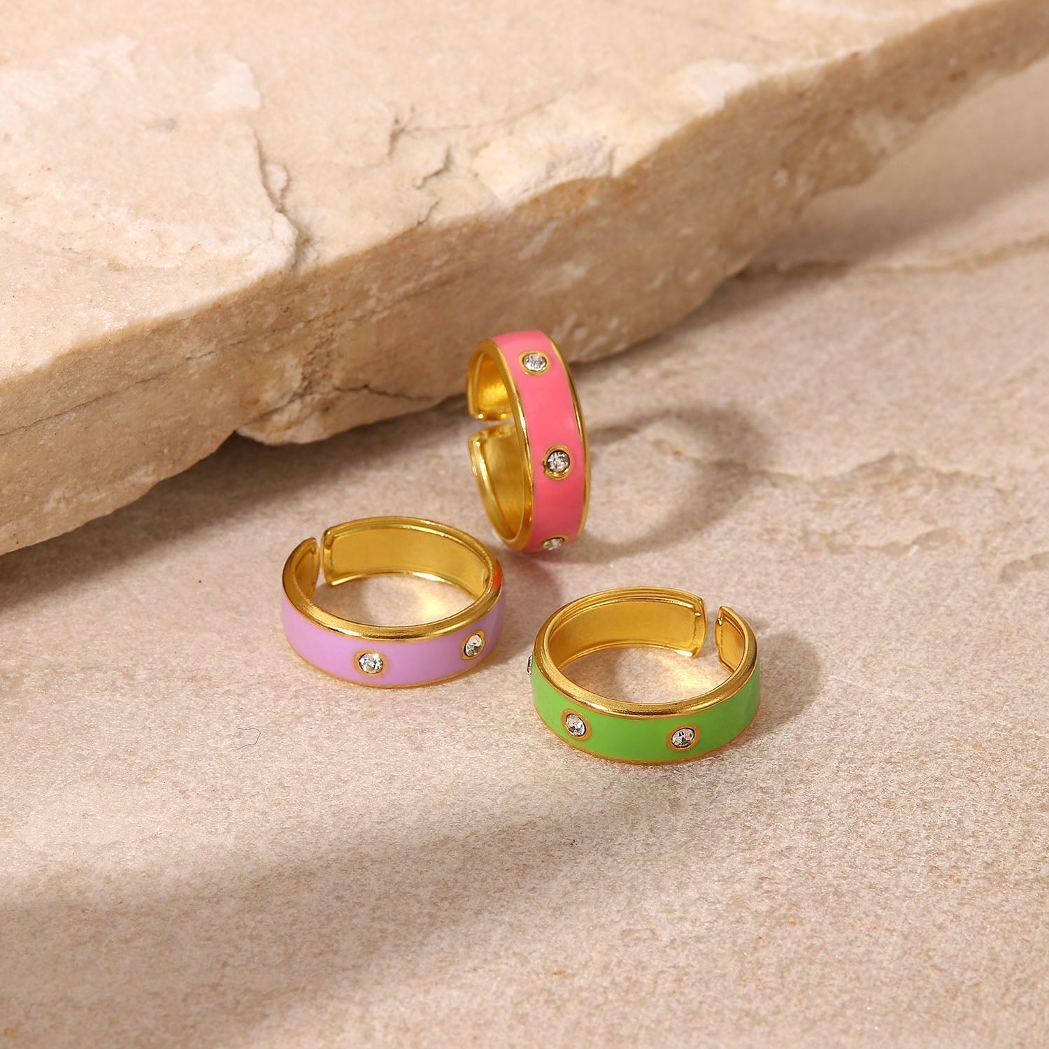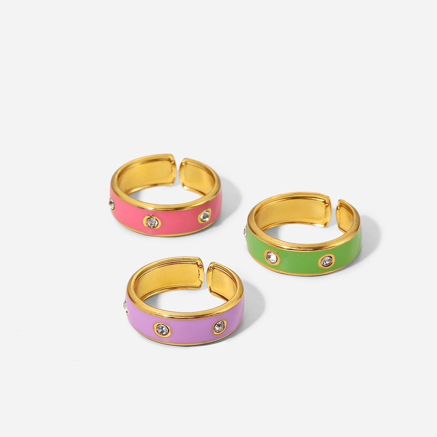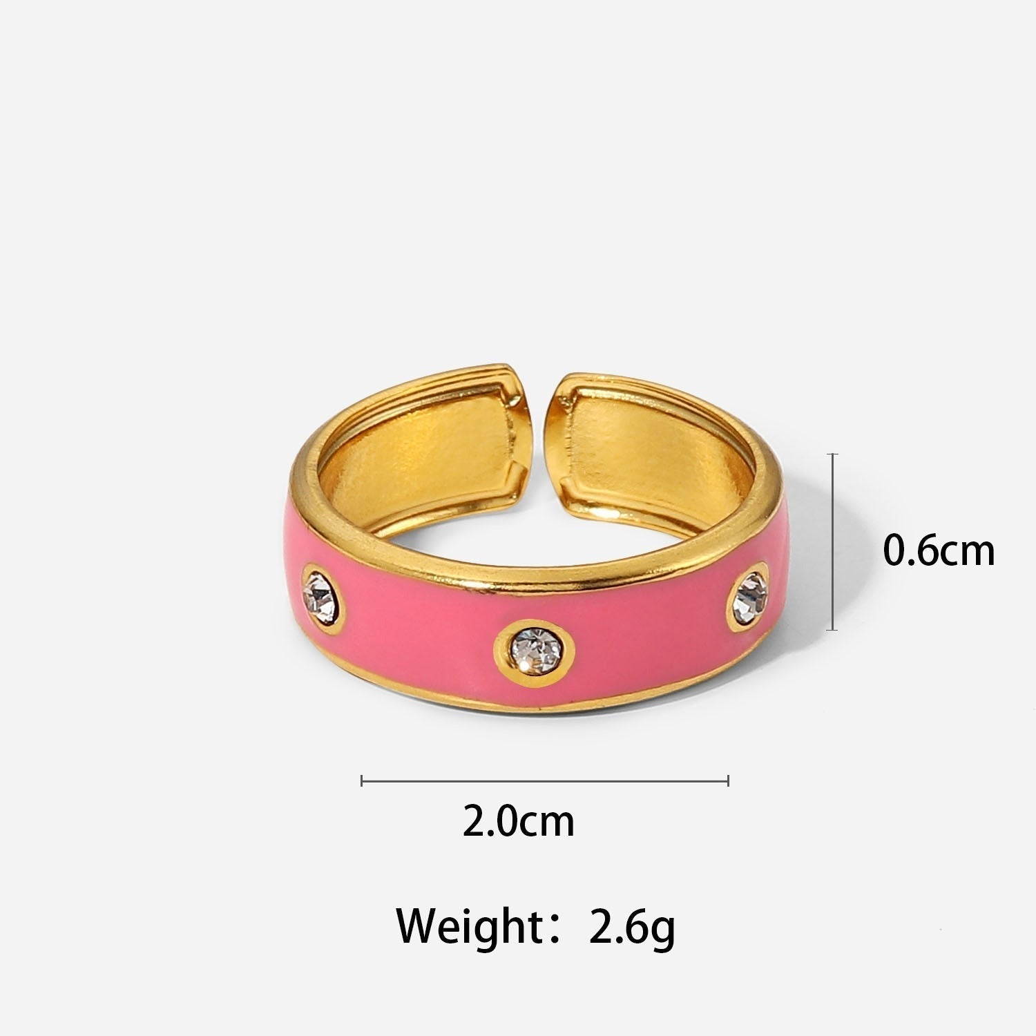 This ring is perfect for everyday style and makes a great statement piece. It is made of high-quality 18K gold plated material and features a vibrant enamel finish. The ring is adorned with sparkling Cubic Zirconia studs for a touch of sparkle. The ring is comfortable and lightweight, making it perfect for everyday wear. It is an ideal gift for yourself or your loved ones.