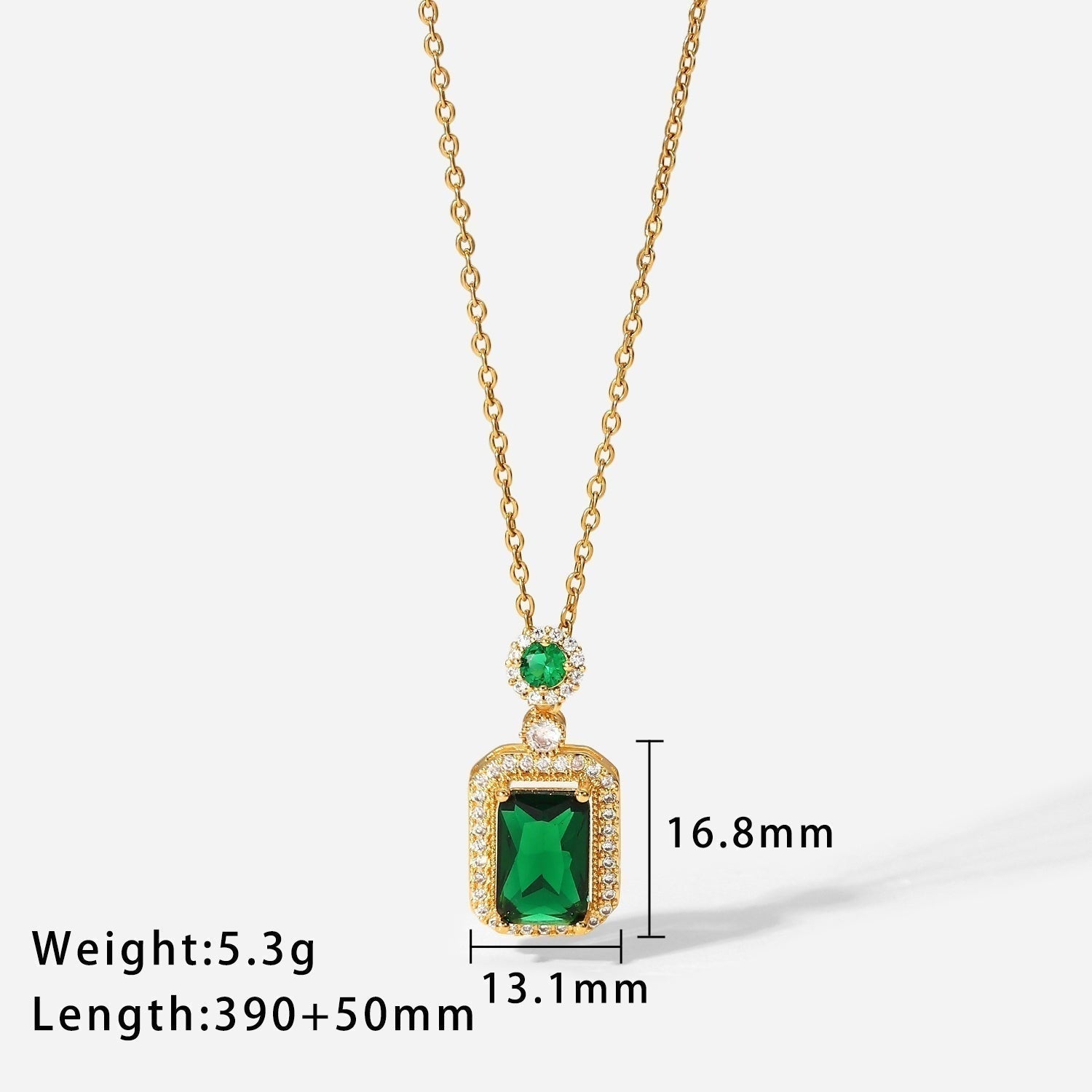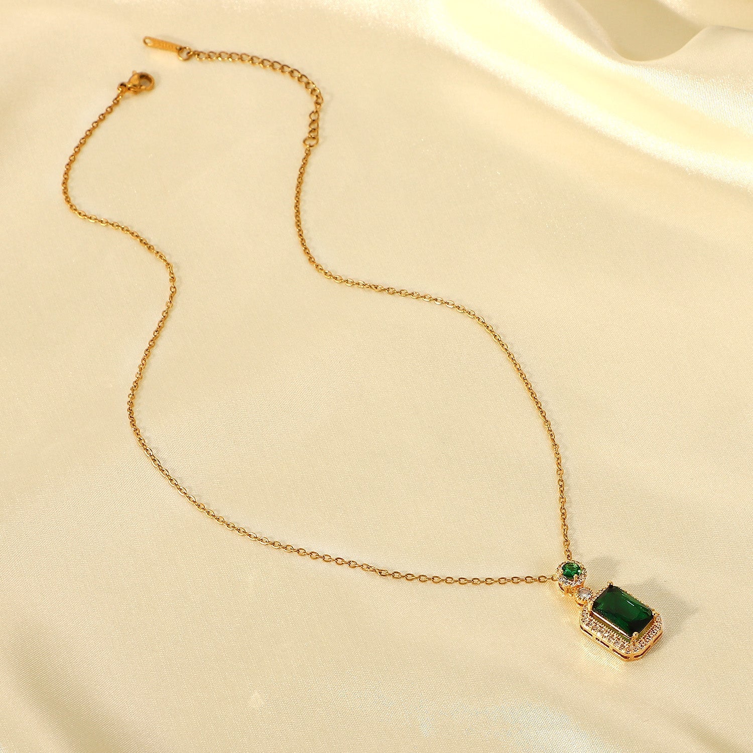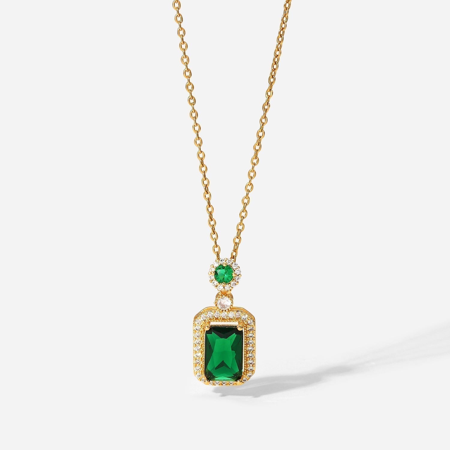 This elegant 18k gold-plated necklace is the perfect accessory. The necklace is made with a high-quality material that is tarnish-free and long-lasting, making it the perfect piece of jewelry that can stand the test of time. The pendant features a beautiful green Cubic Zirconia rectangle, adding a sophisticated and stylish touch. This necklace is perfect for any occasion and looks great when paired with any outfit.