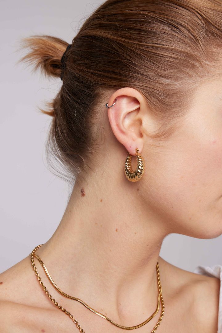Indulge in whimsical delight with our Croissant Earrings—an enchanting accessory that not only captures the essence of a delectable pastry but also showcases an iconic vintage design cherished throughout the years. These earrings redefine elegance with their crescent shape, effortlessly elevating your ensemble and adding a touch of playful sophistication to your look. Ideal for those who savour unique pieces, the Croissant Earrings can be worn alone for a statement of whimsical chic or paired with other accessories to express your individual style. Perfect for fashion enthusiasts who appreciate a delightful twist, these earrings seamlessly capture attention with their charming design, allowing you to infuse your look with whimsy and unmatched elegance while honouring a timeless vintage tradition.