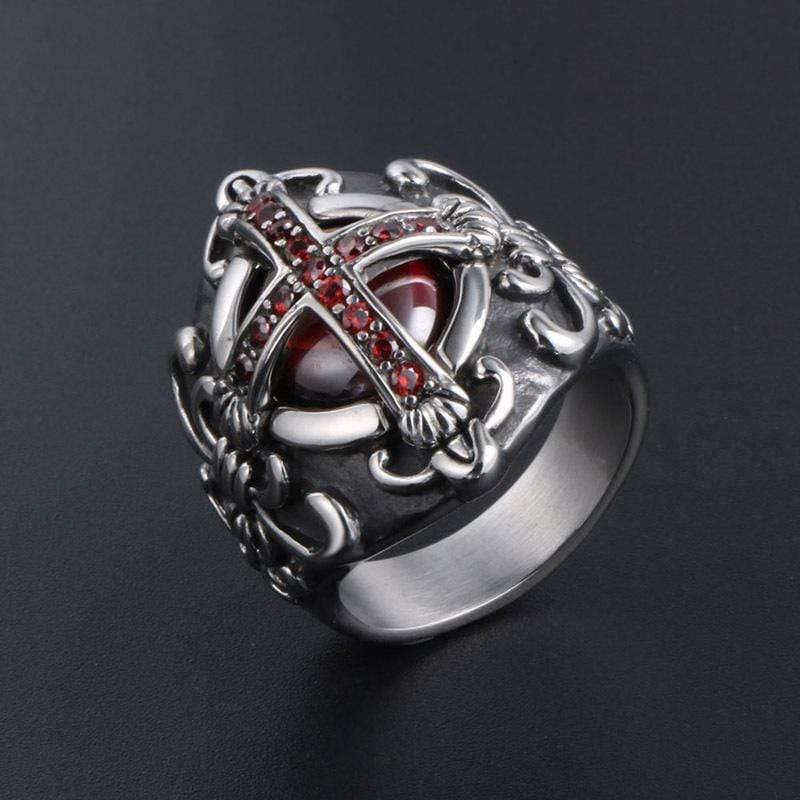 Produced from high-quality stainless steel, this cross ring is thick and heavy yet exceptionally detailed. Its carefully crafted design is built to last and handle even the roughest times. This stainless steel ring makes a real statement when worn and is sure to grab desirable attention. Truly skull rings for men, truly men's stainless steel rings.