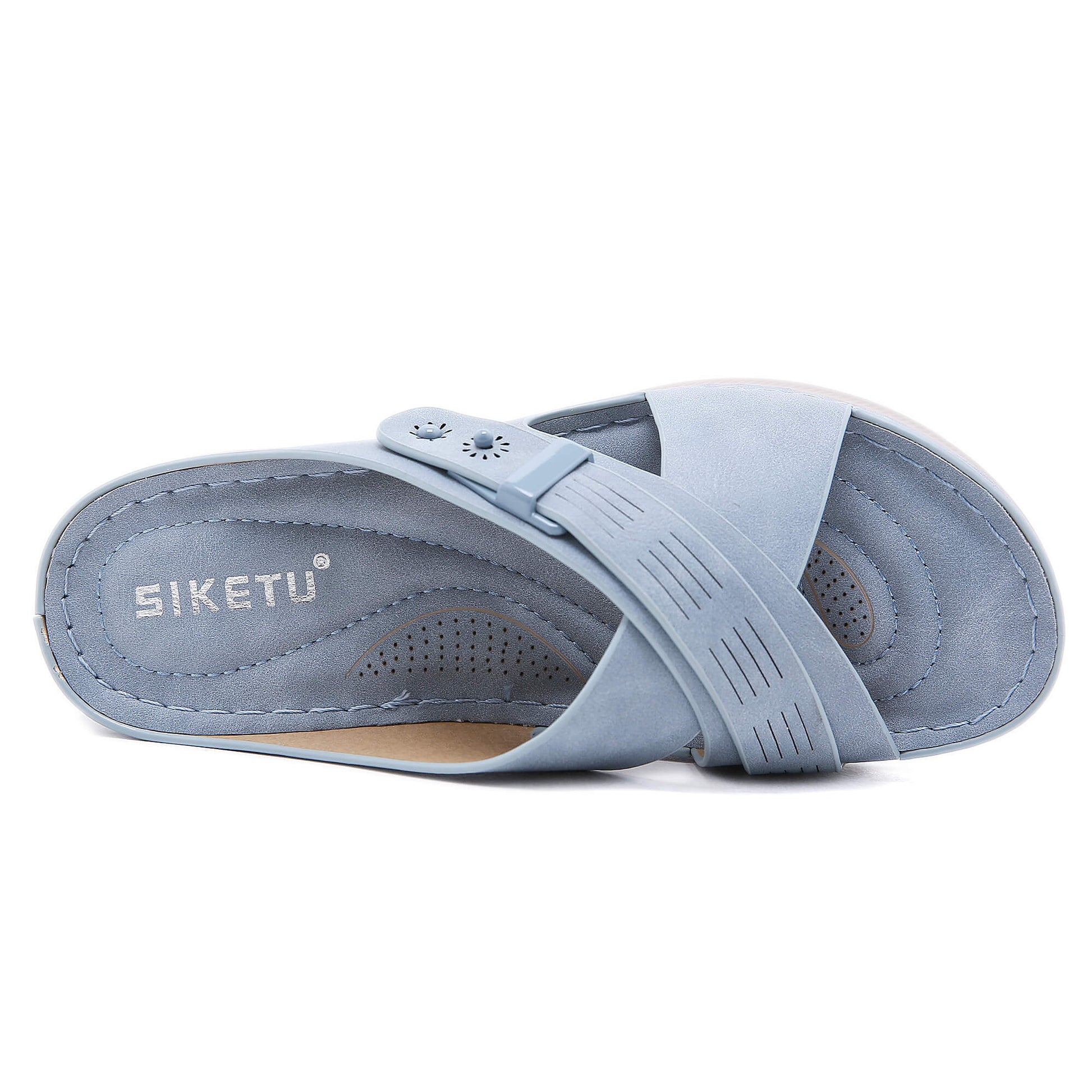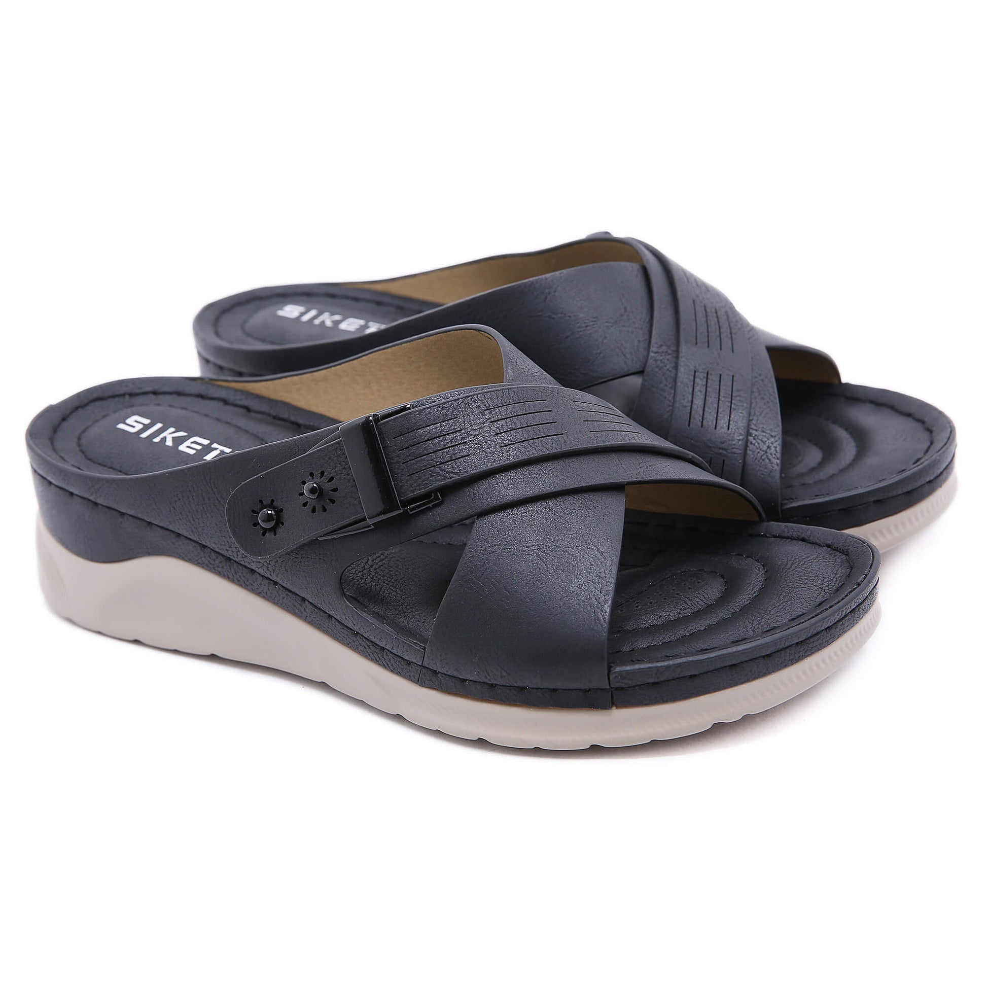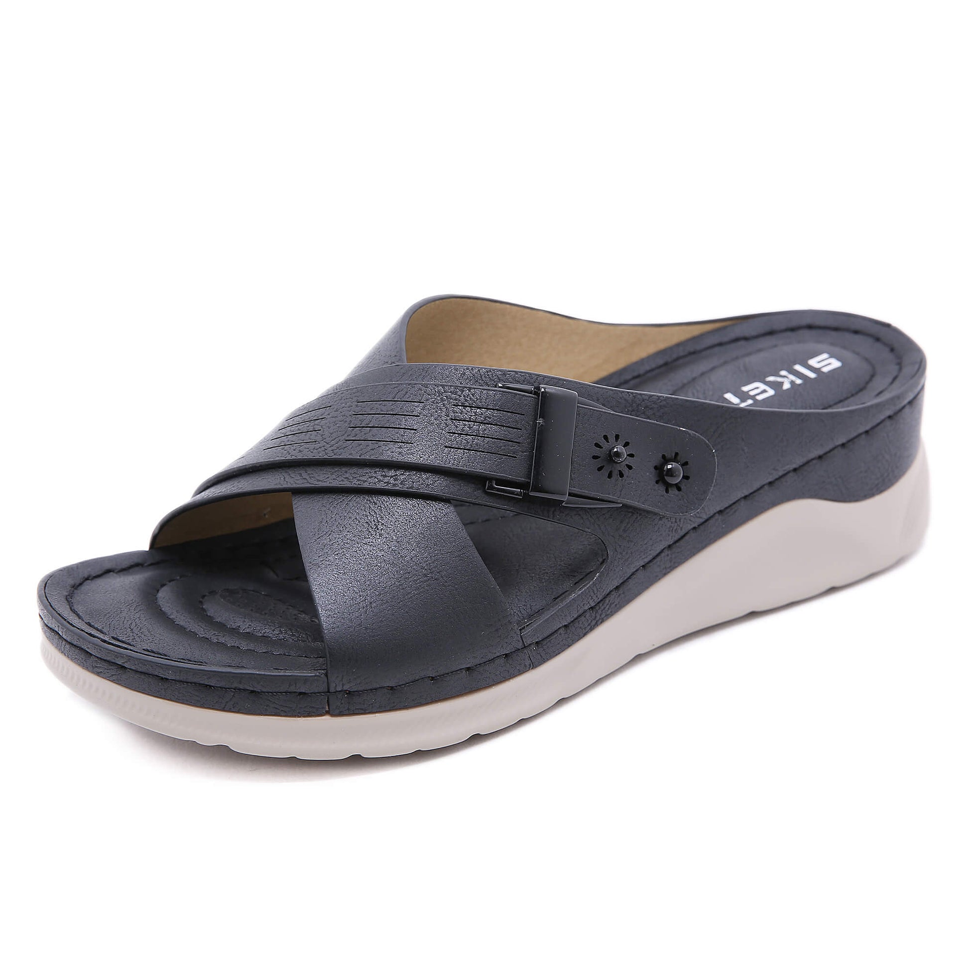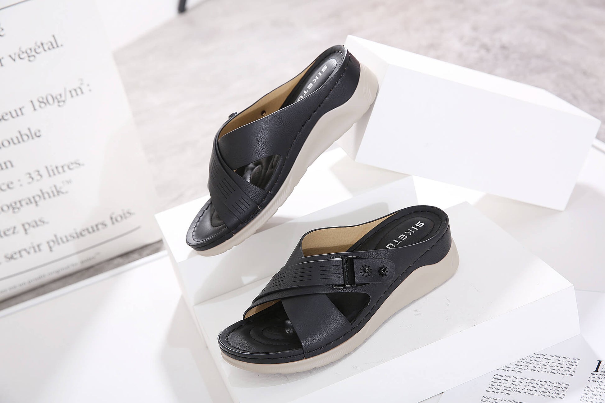 Proudly display your pedicure in this sleek peep-toe crisscross sandal that's oh-so simple to slip on with adjustable buckle.