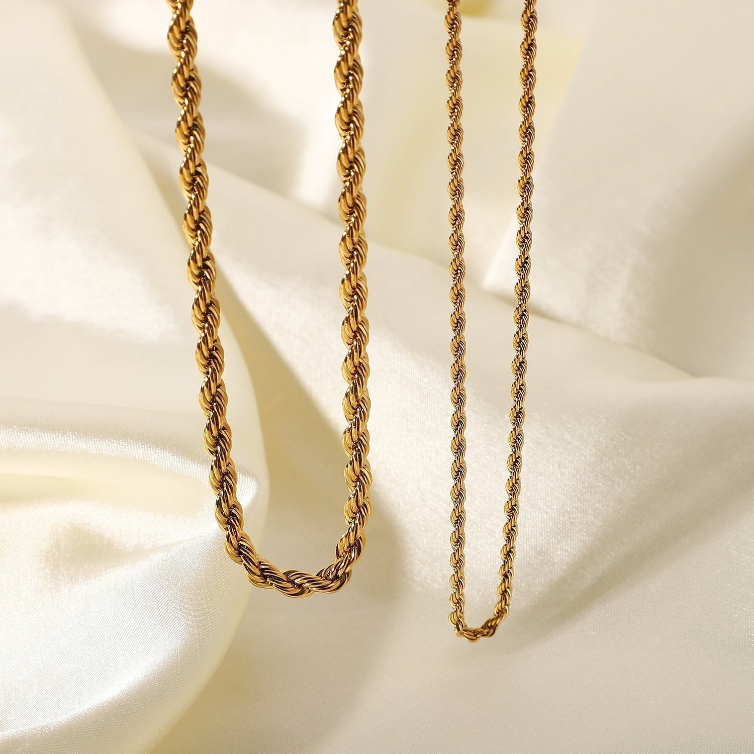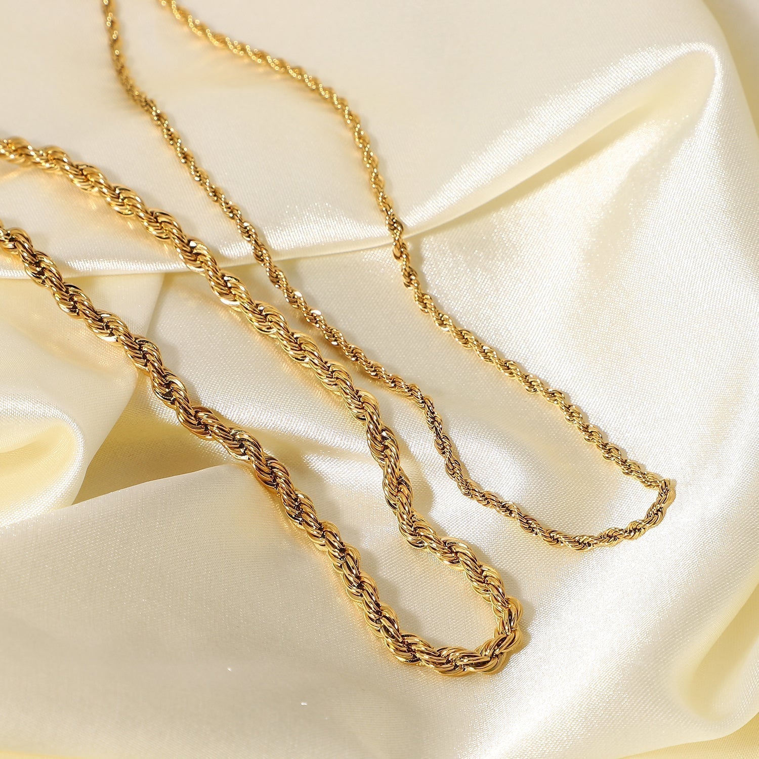 This dainty twisted rope chain necklace is the perfect piece of jewelry for any stylish and dandy look. It is a hip pop unisex stacking gold plated choker necklace that will be sure to make a statement. The necklace is lightweight and comfortable to wear and is sure to be a great addition to any wardrobe.
