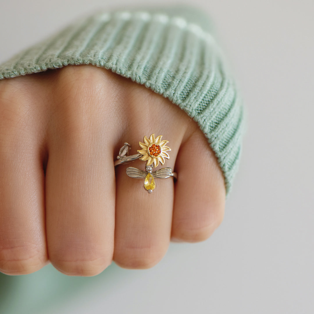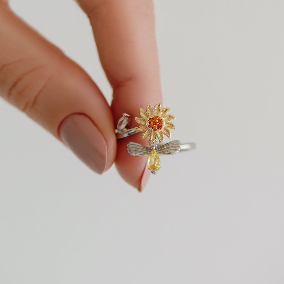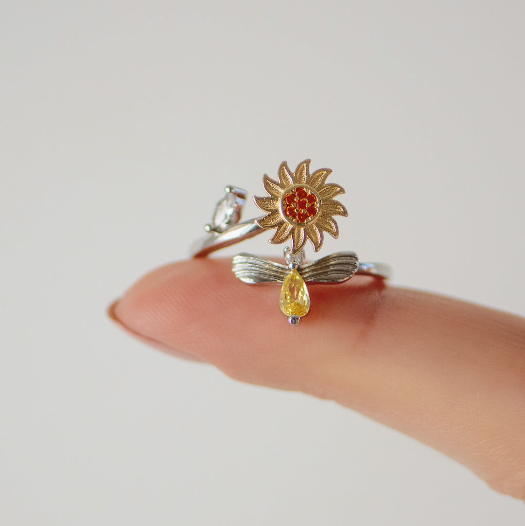 This beautiful Sunflower Fidget ring is the perfect way to express your everlasting love and encouragement to your beautiful daughter. Sunflowers are known for their bright yellow petals, symbolizing optimism, positivity and happiness. The charm of the ring can be spun smoothly, relieving stress while remaining stylish and classy with its intricate design.
