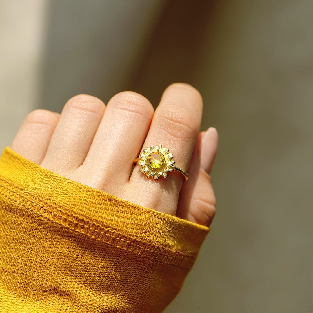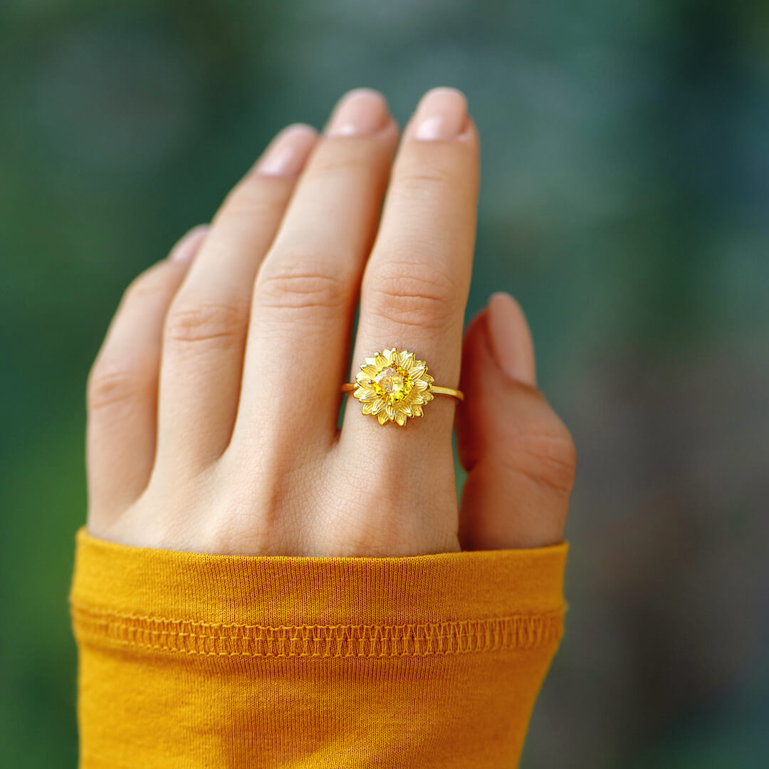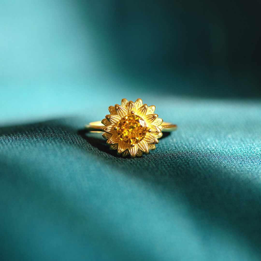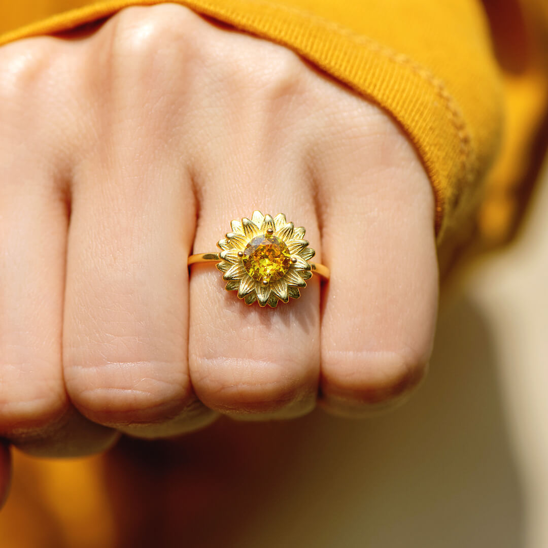 A heartfelt gift from a mother to her beloved daughter. This exquisite ring features a radiant sunflower design, symbolizing warmth, happiness, and the everlasting love shared between a mother and her daughter. Accompanied by a heartfelt message card that reads, "You are my sunshine. The Love between mother and daughter never fades, never diminishes, it always stays. No matter where we go, or what we do, I'll always be there to love and support you," this ring becomes a cherished token of unwavering support and a constant reminder of the unbreakable bond that exists between them. Let this remarkable piece serve as a beacon of love, radiating its golden glow and illuminating the path of their journey together, forever brightening each other's lives with endless love and support.
