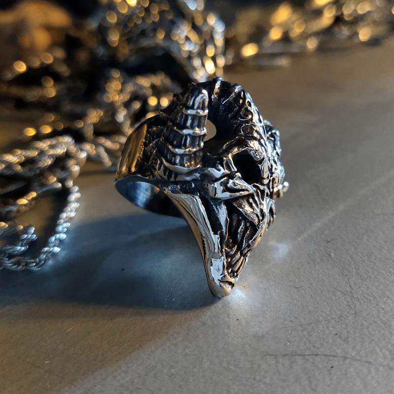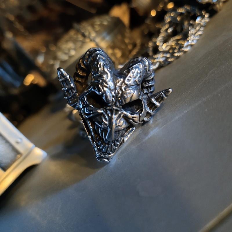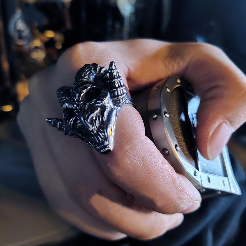 This demon ring is made of high quality stainless steel, is thick, and exceptionally detailed. It has been carefully crafted to last even in the toughest of times. This stainless steel ring makes an authentic sound when worn and is sure to attract attention. A real men's ring, a real men's stainless steel ring.