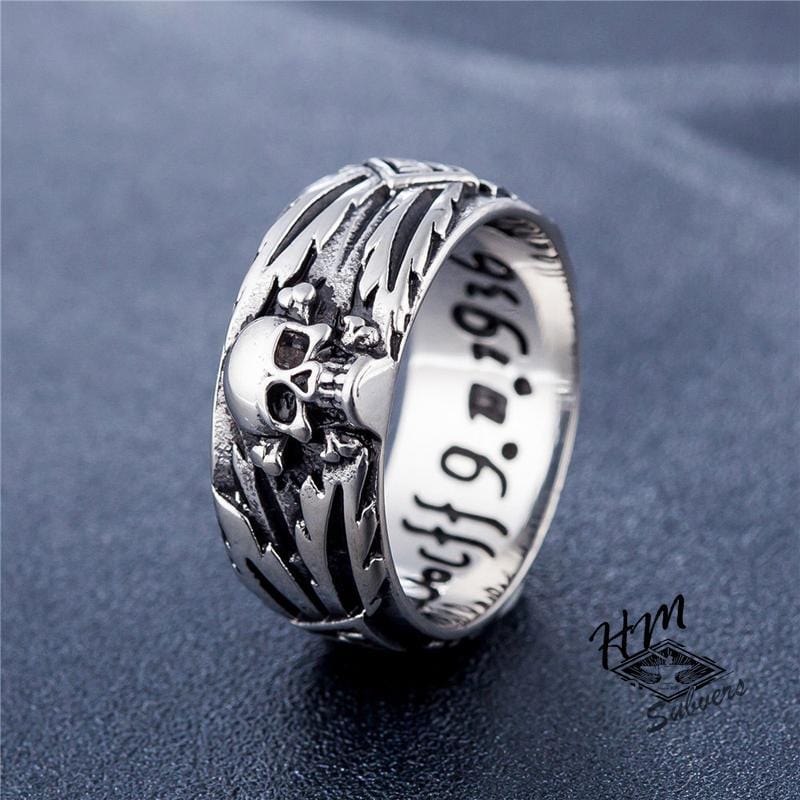 Produced from high-quality stainless steel, this demon skull ring is thick and heavy yet exceptionally detailed. Its carefully crafted design is built to last and handle even the roughest times. This stainless steel ring makes a real statement when worn and is sure to grab desirable attention. Truly skull rings for men, truly men's stainless steel rings.