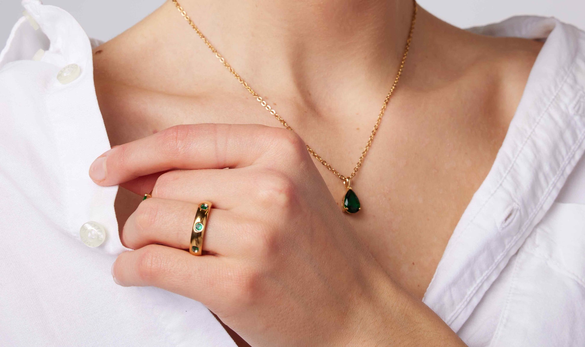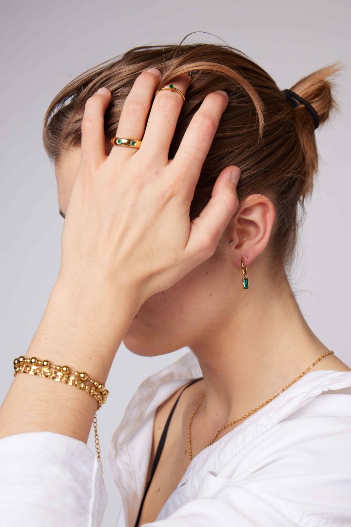 - 18k gold-plated stainless steel with green zircon