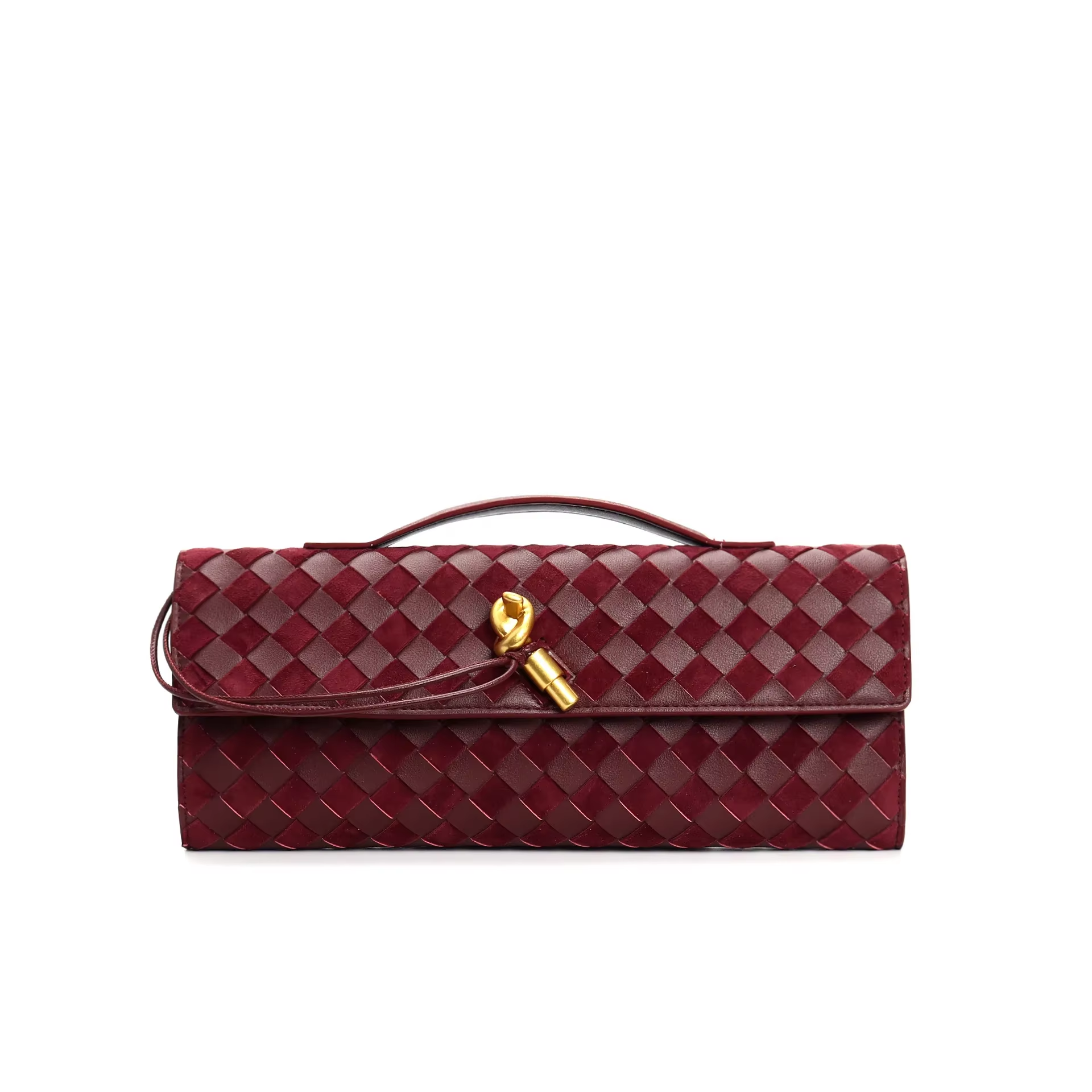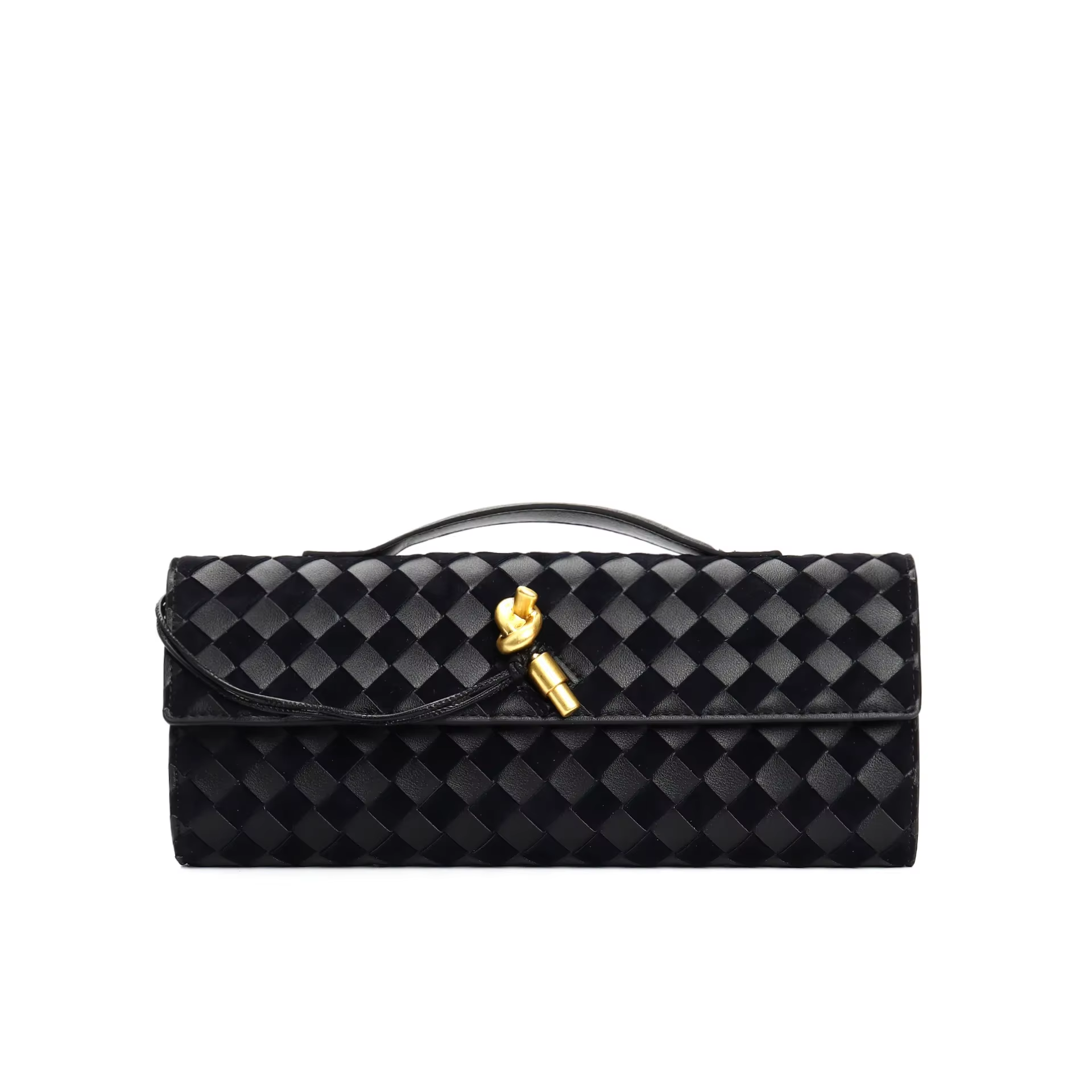Make a stylish statement with the slim and elegant "Andy" evening bag. The elegant woven look combined with a gold-colored clasp gives you a luxurious look that shines on every occasion. Thanks to the practical shoulder strap, you can wear the bag very flexibly - as a chic clutch or comfortably over the shoulder. In the inner compartment you will find enough space for your essentials, and an additional compartment ensures that your valuables are safely stowed away.