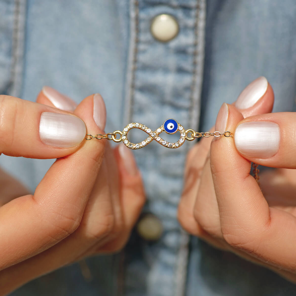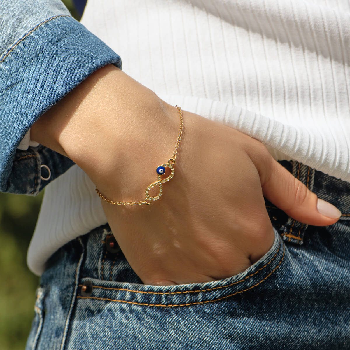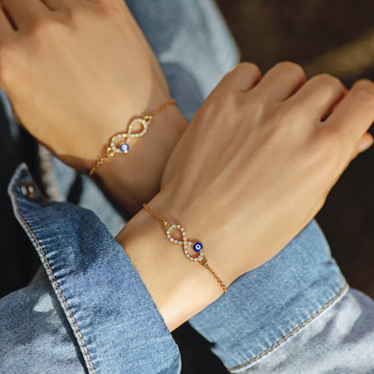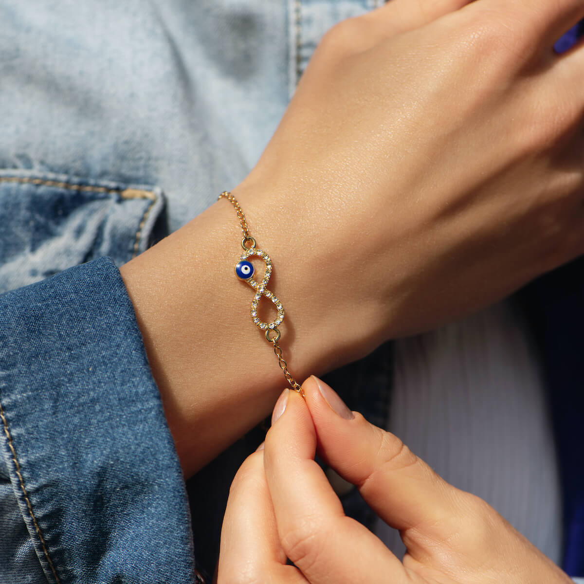 This beautifully crafted Evil Eye Infinity bracelet is a symbol of infinite protection and good fortune. It represents eternal love and unity, adorned with the iconic symbol of the evil eye, which will ward off negative energy and protect you from harm.