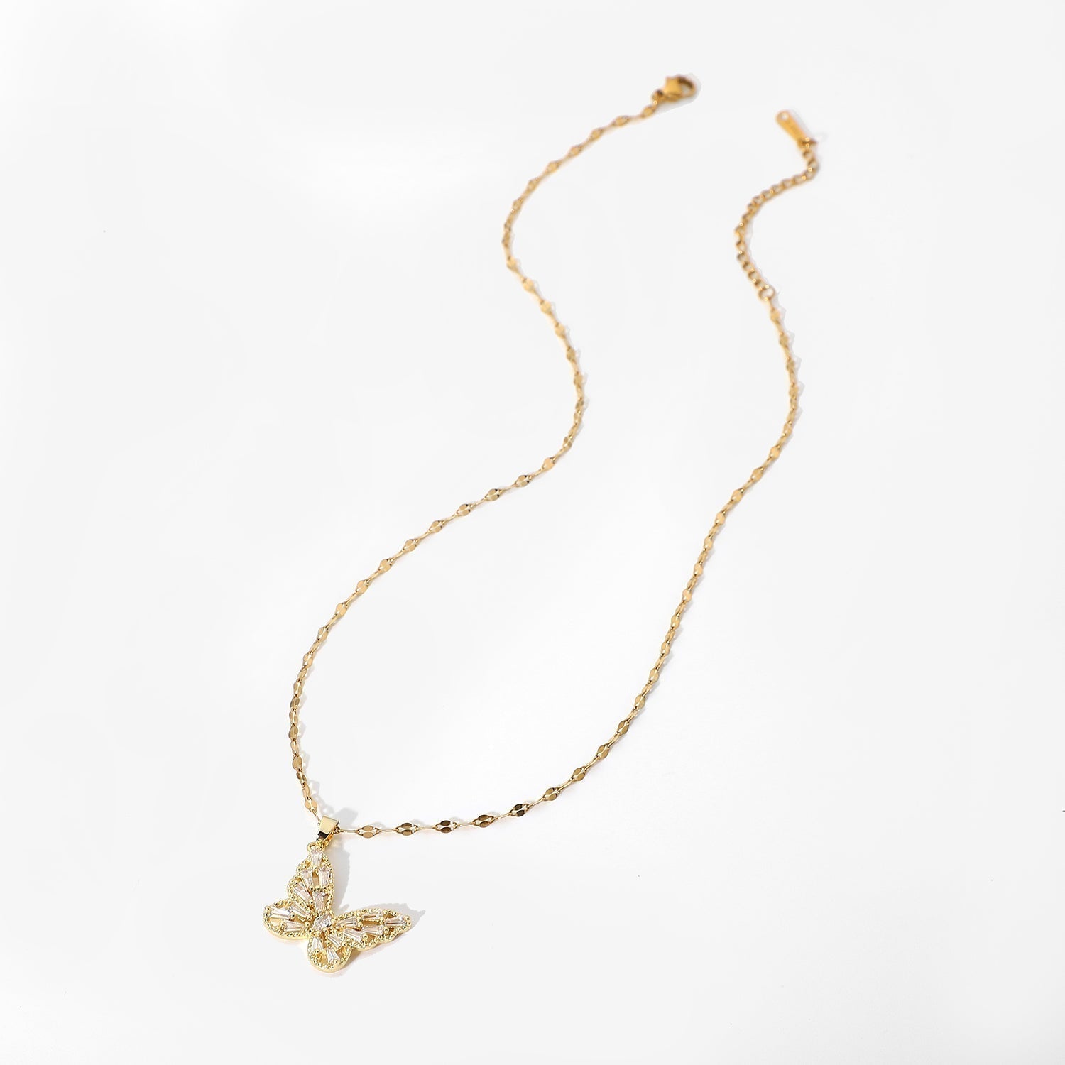 Fancy crystal butterfly necklace for all the funky and fluttering butterflies. It is a voguish 18K gold chain with a Cubic Zircon butterfly pendant.