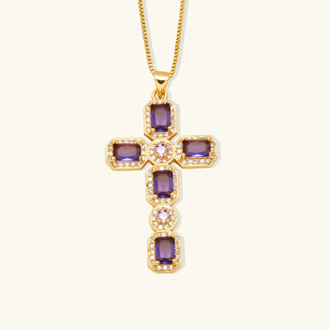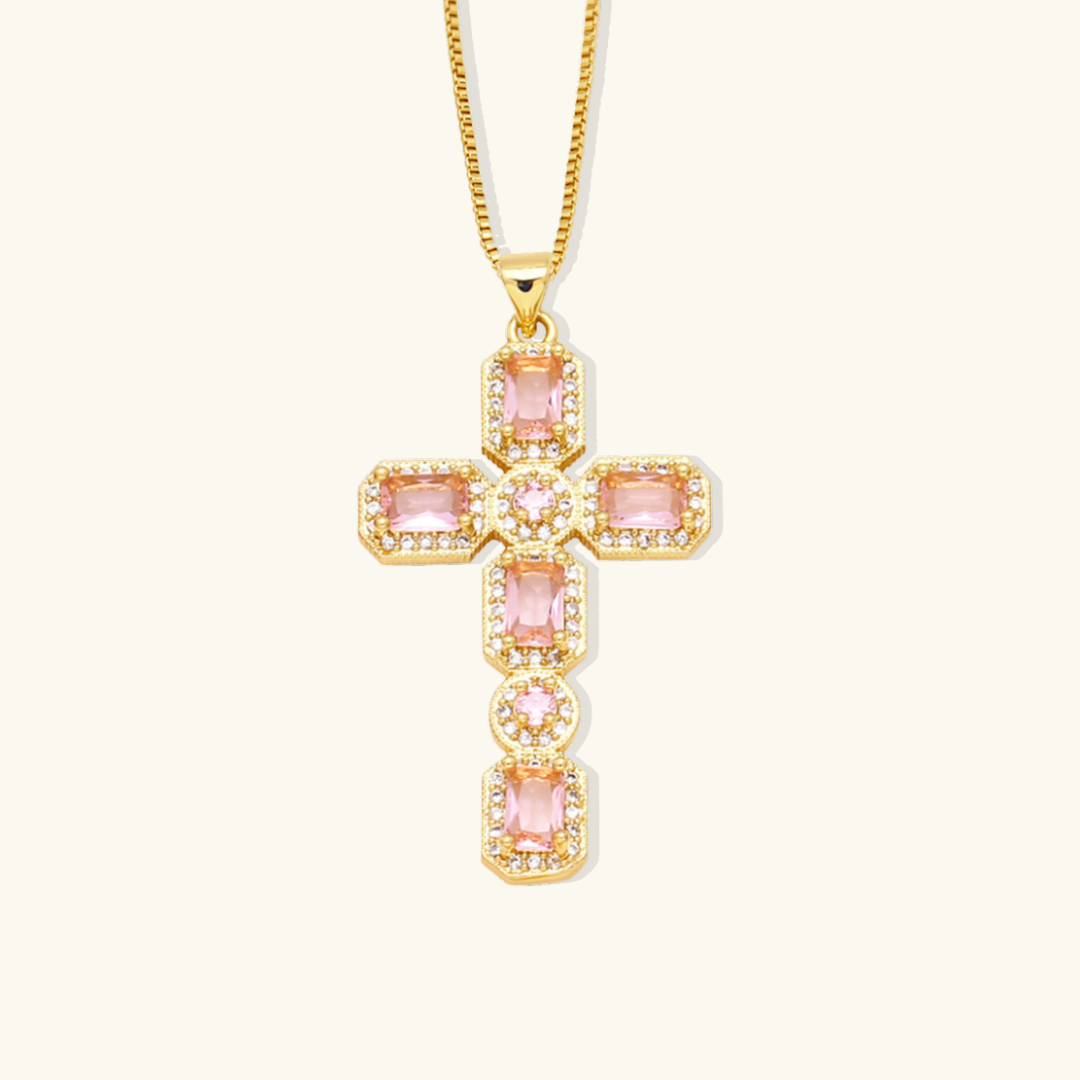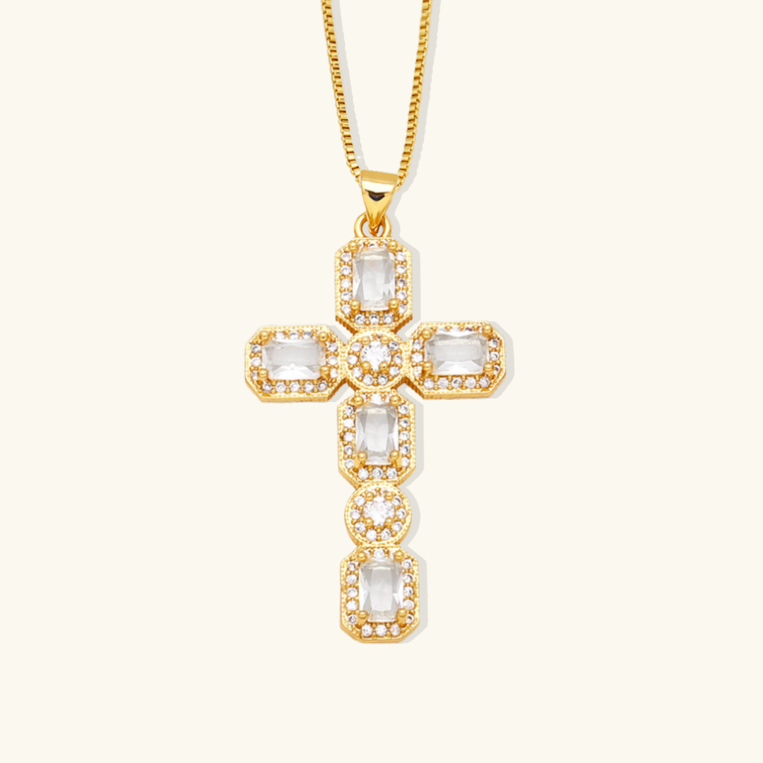 The Florence Faith Necklace features a delicate chain adorned with a cross pendant, symbolizing faith and strength. This elegant piece adds a touch of grace and spirituality to any outfit. Perfect for layering or wearing alone, it brings timeless charm and elegance to your style.