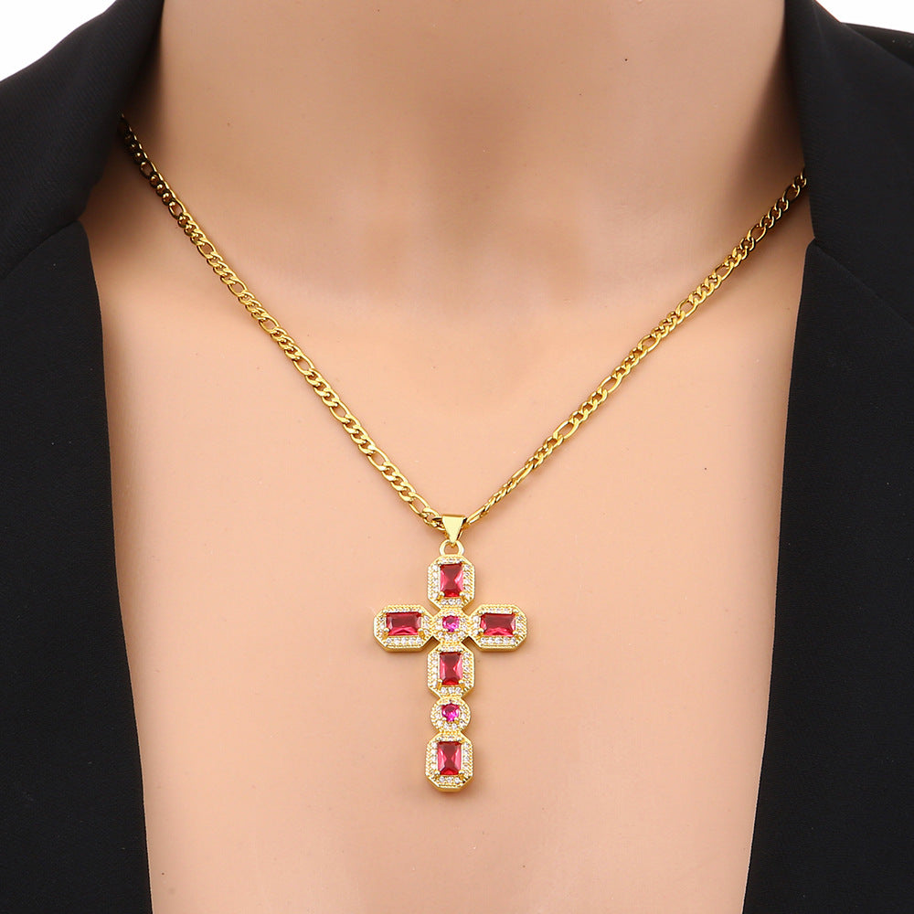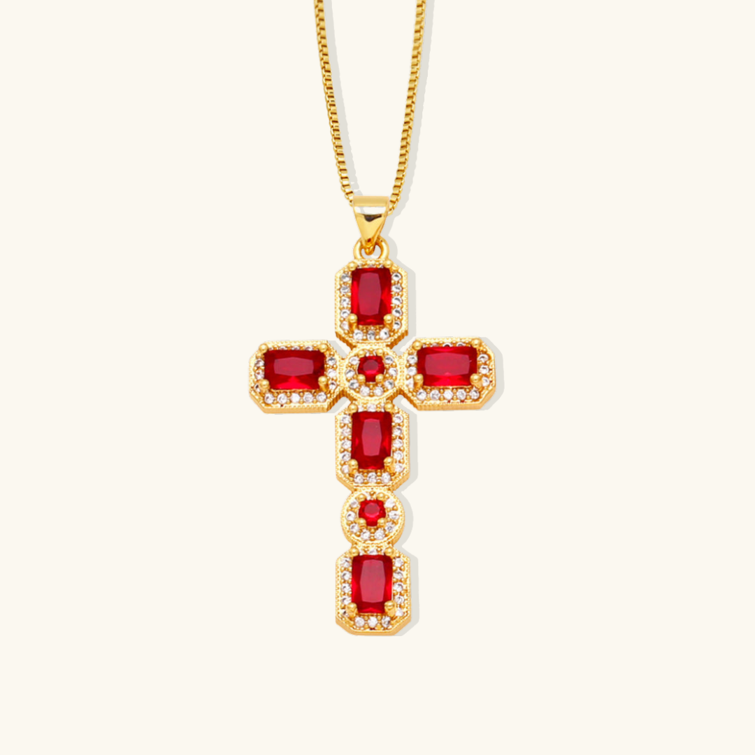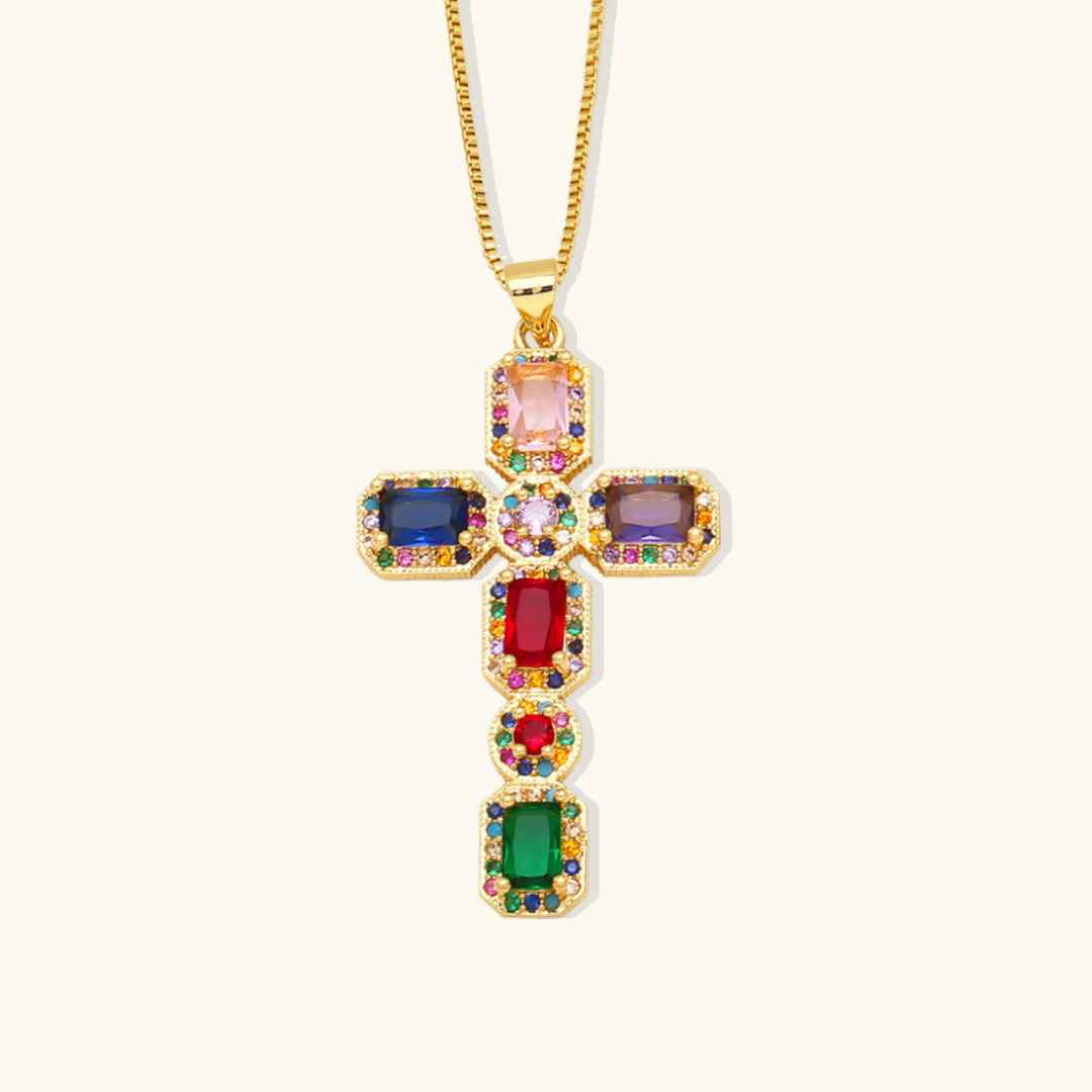 The Florence Faith Necklace features a delicate chain adorned with a cross pendant, symbolizing faith and strength. This elegant piece adds a touch of grace and spirituality to any outfit. Perfect for layering or wearing alone, it brings timeless charm and elegance to your style.