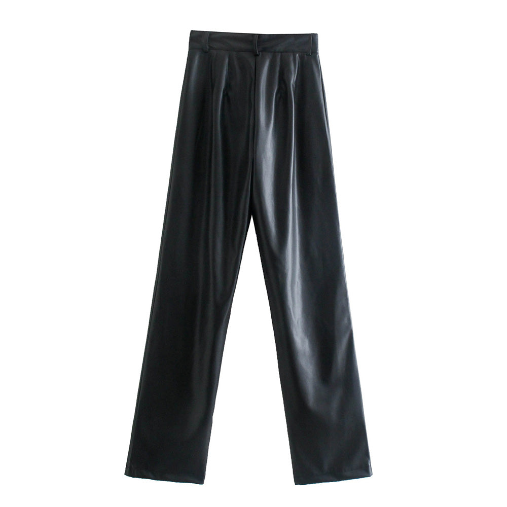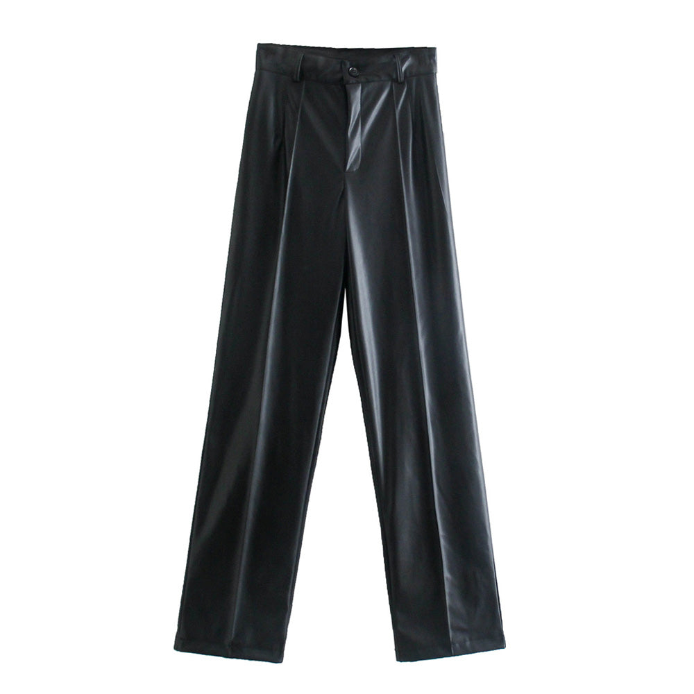 The Gemma Faux Leather Straight Pant is a vintage-inspired, straight leg pant made from luxurious PU fabric. This versatile pant is perfect for everyday wear and can be dressed up or down. The closure type is a zipper fly with a high waist and the fit type is regular.