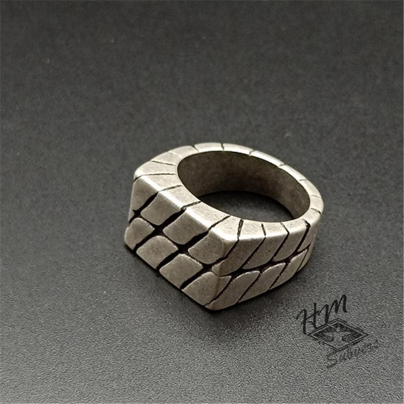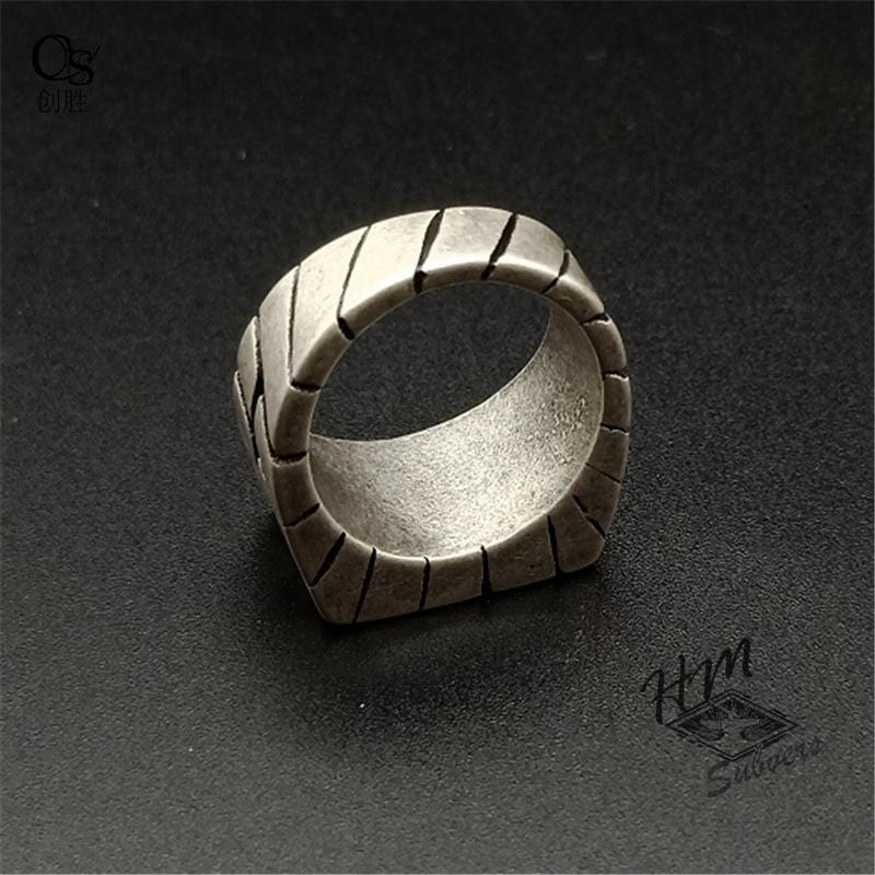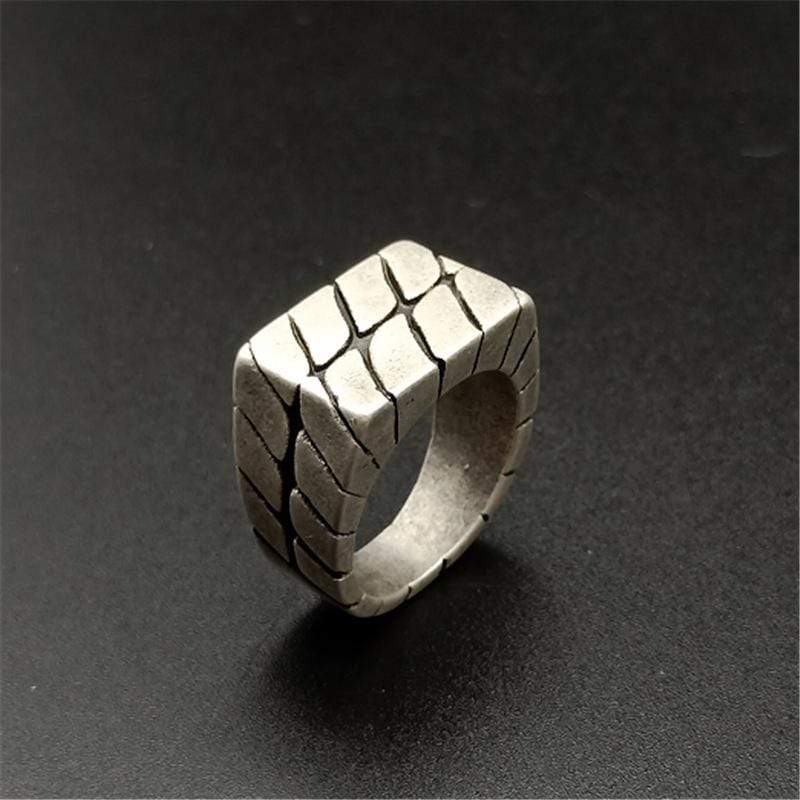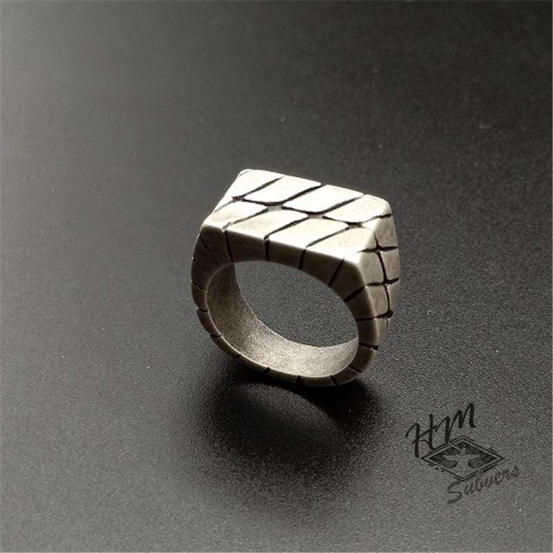 GEOMETRIC SQUARE STRIPED STAINLESS STEEL RING