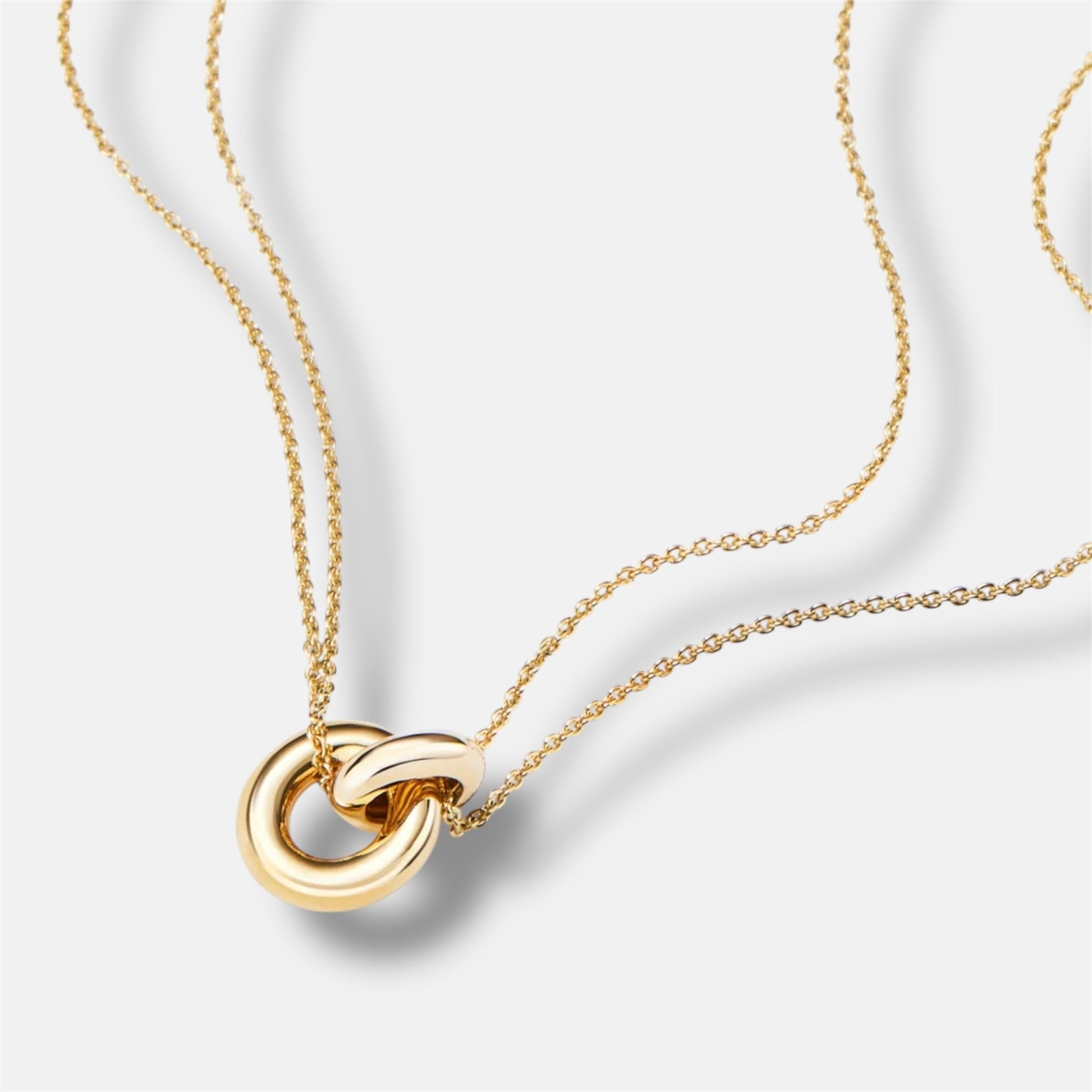 Crafted from durable 316L stainless steel and finished with a radiant 14k gold coating. The interlocking rings symbolise unity and strength - perfect for gifting or self-expression. A timeless piece designed to shine with you, day to night.