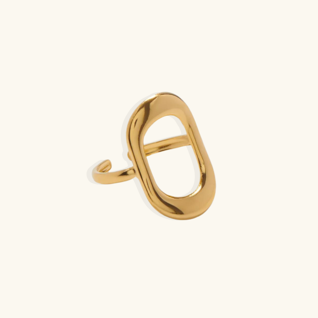 The Golden Hollow Ring is a masterpiece of modern minimalism, combining elegance with a bold, contemporary design. This exquisite ring features a polished gold band with a distinctive hollow center, creating a striking contrast between solidity and space. The open design adds a sense of lightness and sophistication, making it a perfect accessory for both casual and formal occasions.
