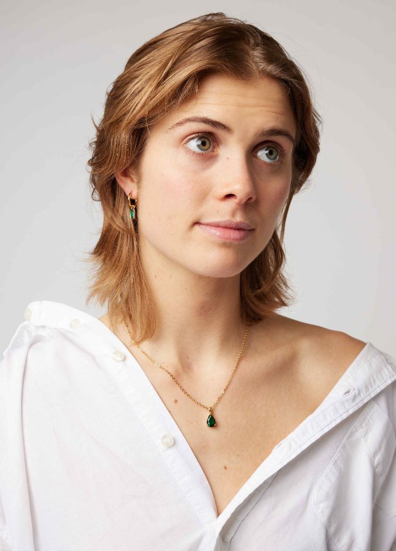 Adorn yourself in celestial charm with our Green Sirius Necklace—a captivating piece featuring a mesmerising green crystal drop pendant. Inspired by the celestial allure of the Sirius star, this necklace adds an enchanting touch to your ensemble. With its elegant and minimalist design, the Green Sirius Necklace is a versatile accessory suitable for various occasions. Whether worn solo for a statement of cosmic beauty or paired with other necklaces, it allows you to express your style with versatile charm and celestial allure, enhancing your look with every wear.