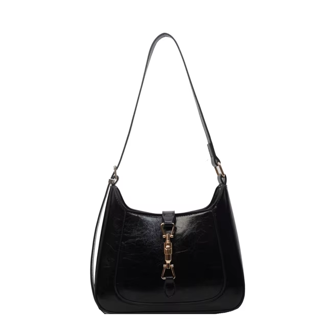 The "Karla" handbag is an elegant shoulder bag with a shiny look. Its gold-colored closure detail gives it a luxurious touch.
