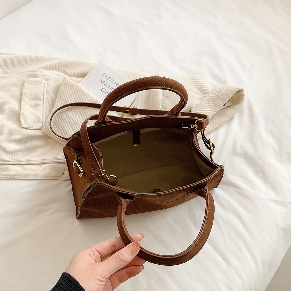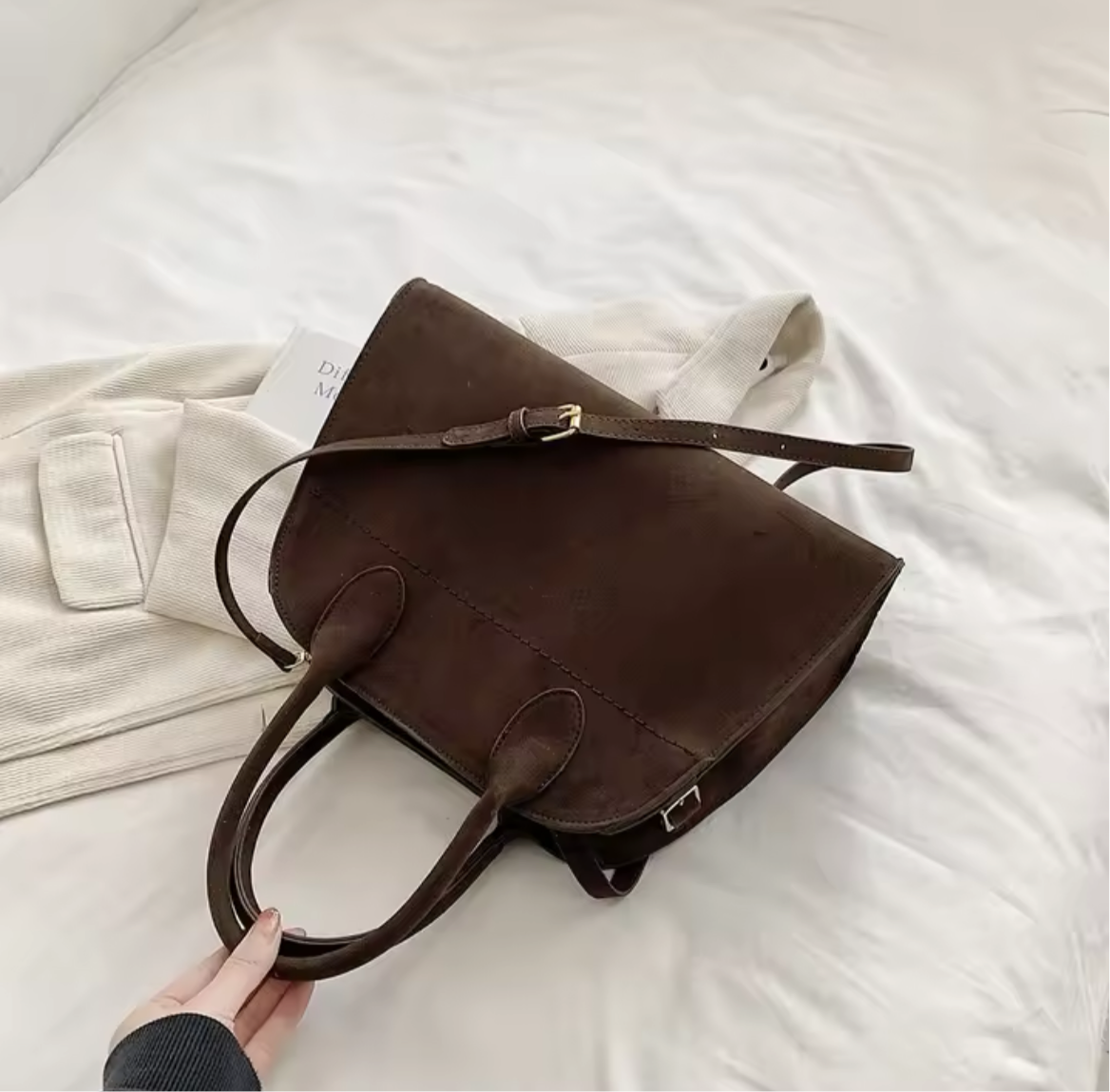 Prove yourself to be a real fashionista with the "Sofia" handbag! The elegant brown color and spacious design ensure the ultimate stylish look. The bag offers enough space for your most important items and is made of high-quality imitation suede.