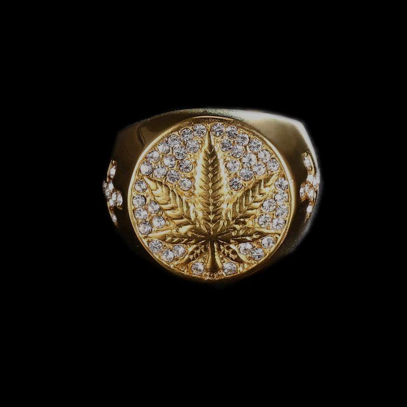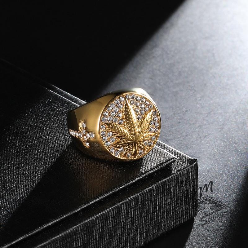 HIPHOP LEAVES WITH DIAMONDS STAINLESS STEEL RING