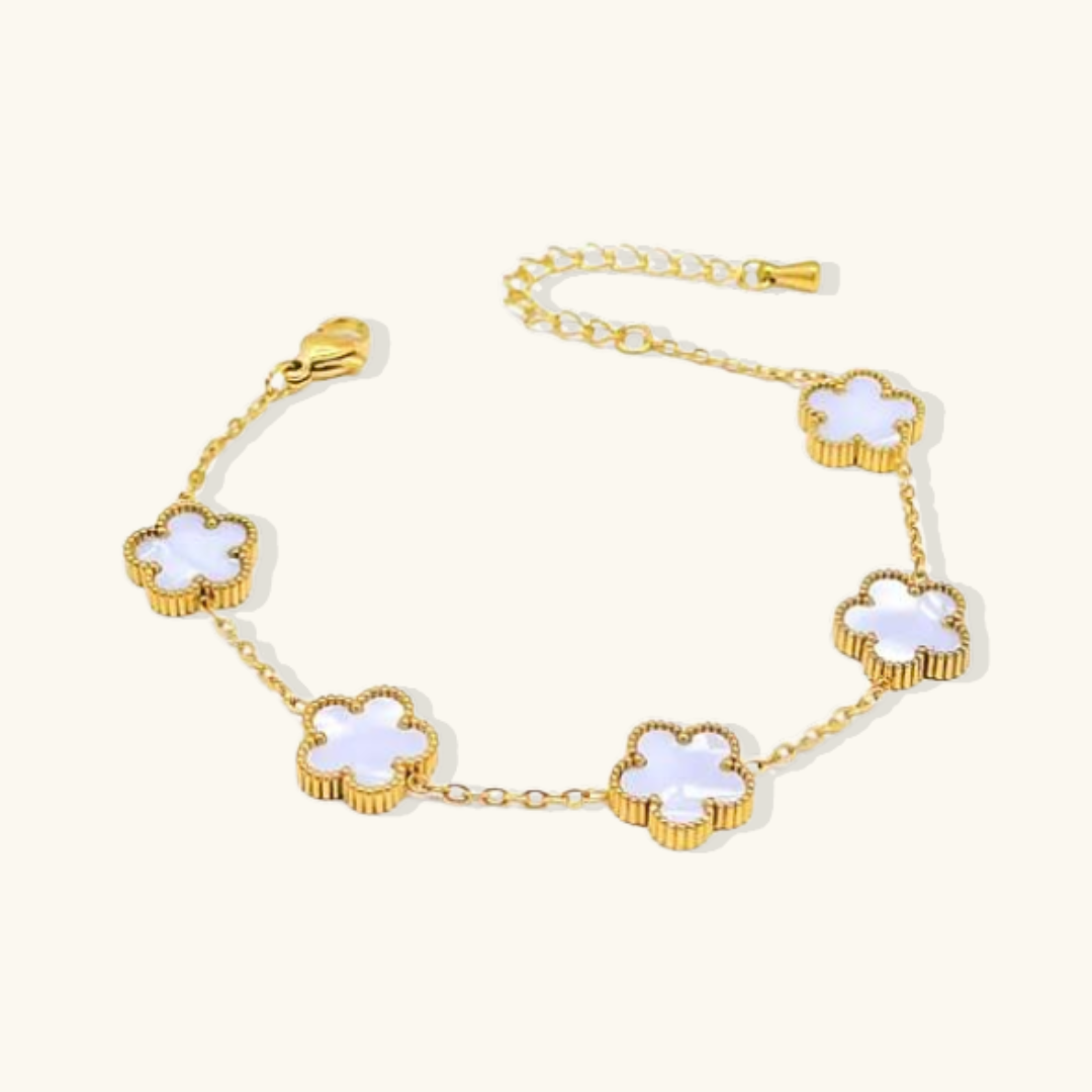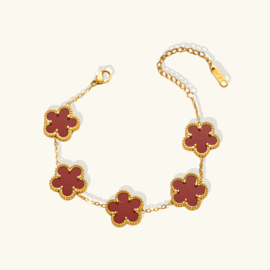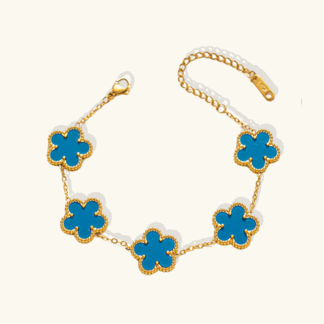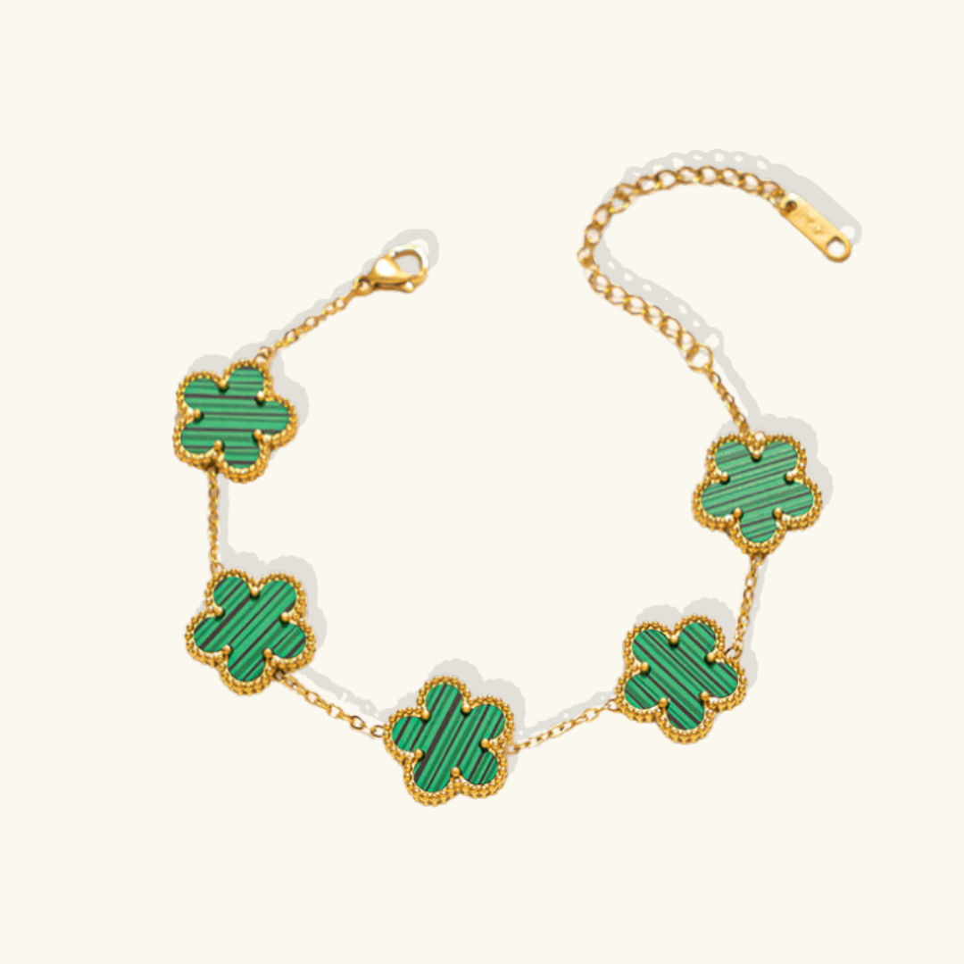 The Iconic Clover Bracelet radiates charm with its beautifully designed and iconic five-leaf clover pendant. Each leaf represents abundance and good fortune, making this piece a symbol of positivity and luck.