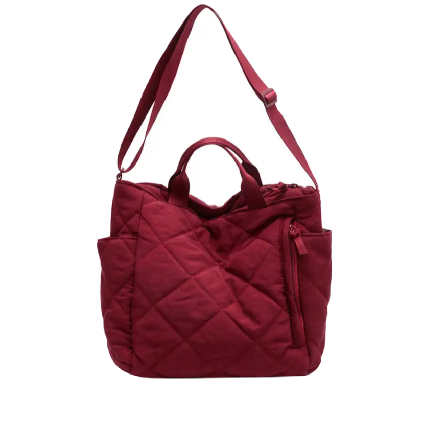 This Quilted Tote Bag is perfect for your weekend getaway. The tote bag features a quilted, design and exterior pockets for easy, accessible packing. Ready to be your reliable travel companion.