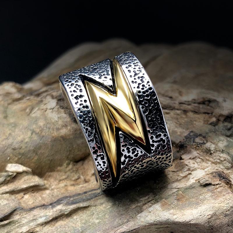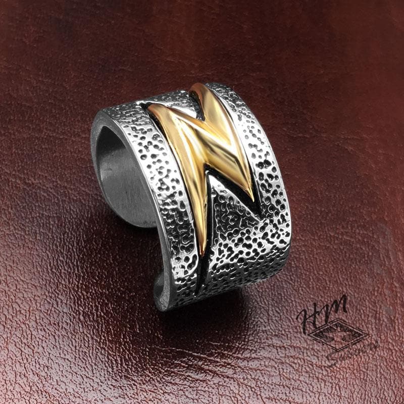 This lightning ring is made of high quality stainless steel, is thick, and exceptionally detailed. It has been carefully crafted to last even in the toughest of times. This stainless steel ring makes an authentic sound when worn and is sure to attract attention. A real men's ring, a real men's stainless steel ring.