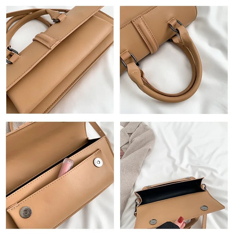 Introducing our Minimalist Top Handle Bag, a perfect accessory for fashion-forward women on the go. Designed with a sleek and minimalist aesthetic, this small bag features a sturdy top handle for easy carrying. It's compact yet spacious enough to hold your essentials like lip gloss, phone, and keys. Whether you're dressing up for a special occasion or enhancing your everyday style, this versatile crossbody bag adds an elegant touch to any outfit.