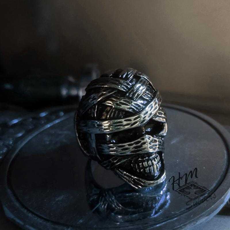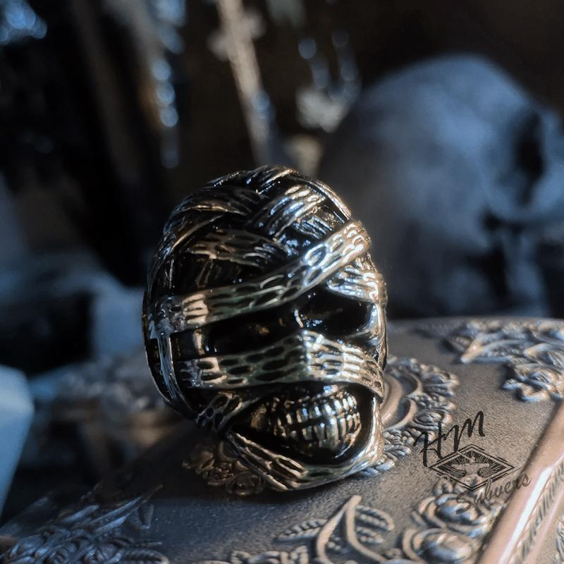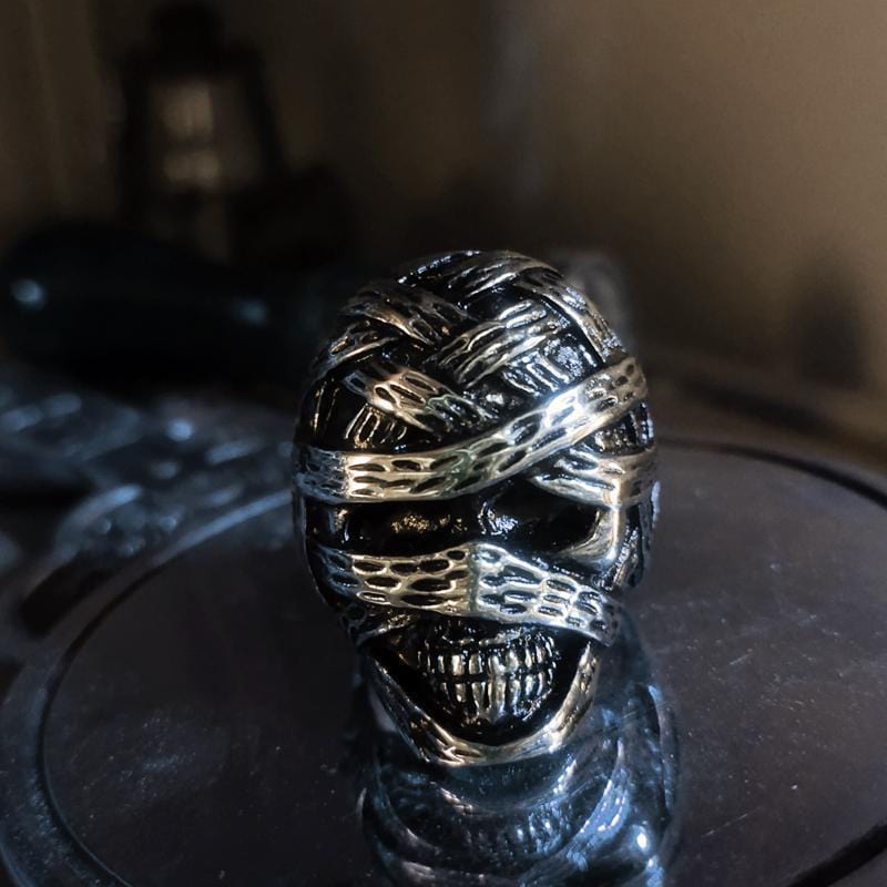This mummy skull ring is made of high quality stainless steel, is thick, and exceptionally detailed. It has been carefully crafted to last even in the toughest of times. This stainless steel ring makes an authentic sound when worn and is sure to attract attention. A real men's ring, a real men's stainless steel ring.